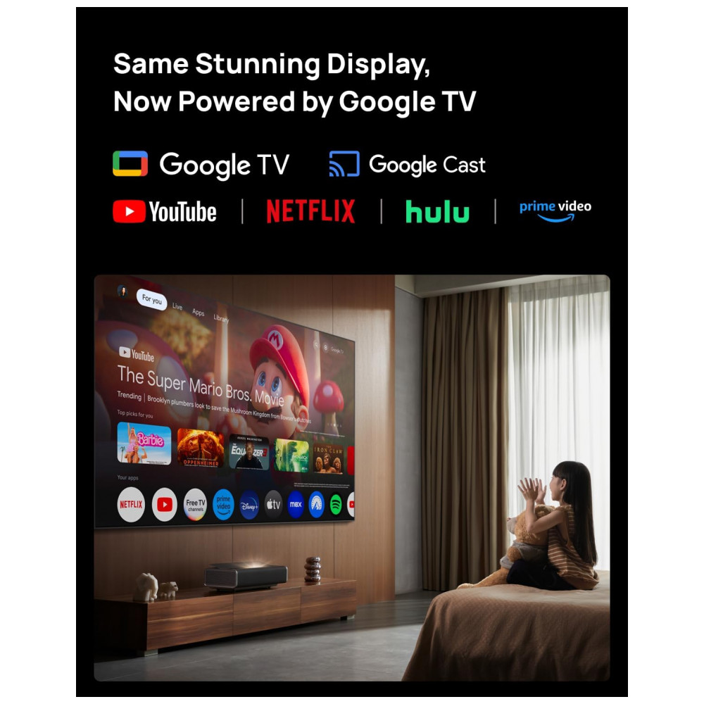 O modelo GTV incorpora sistema Google TV com Netflix licenciada, permitindo acesso direto a aplicativos de streaming compatíveis logo ao ligar o projetor, sem necessidade de dispositivos externos adicionais. A conectividade inclui HDMI, USB, Wi‑Fi, Bluetooth e porta Ethernet (em linha com a série), possibilitando integração com consoles de jogos, computadores, receptores AV e outros equipamentos de mídia.