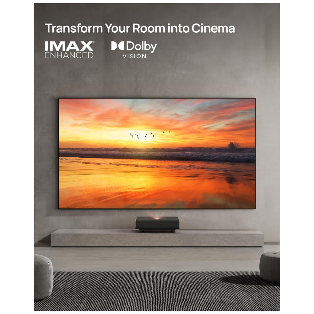 A fonte de luz a laser Dual Light 2.0 associada à tecnologia DLP contribui para maior durabilidade e estabilidade do brilho ao longo do tempo de uso. O sistema de som integrado Harman Kardon, com suporte a Dolby Atmos e outros formatos de áudio surround, permite experiência sonora imersiva sem necessidade imediata de um sistema de som externo em configurações típicas de sala.