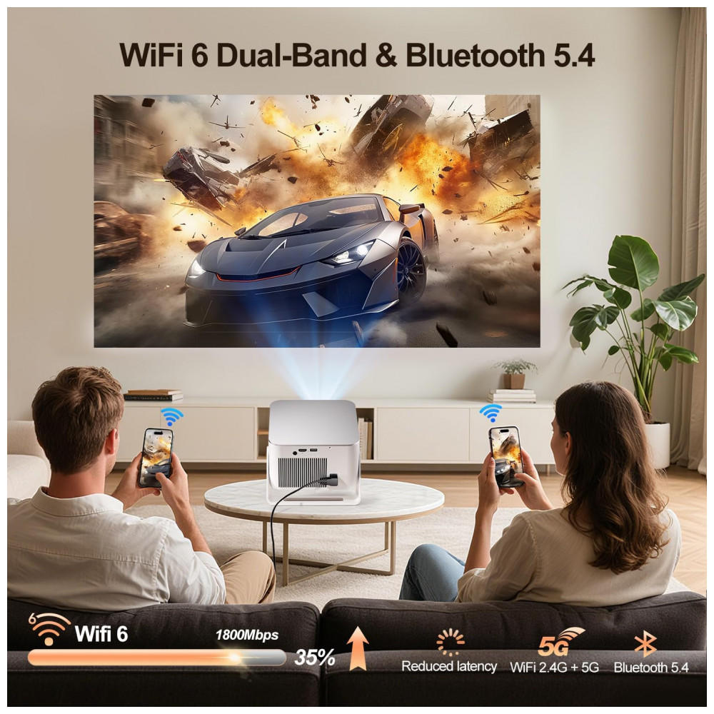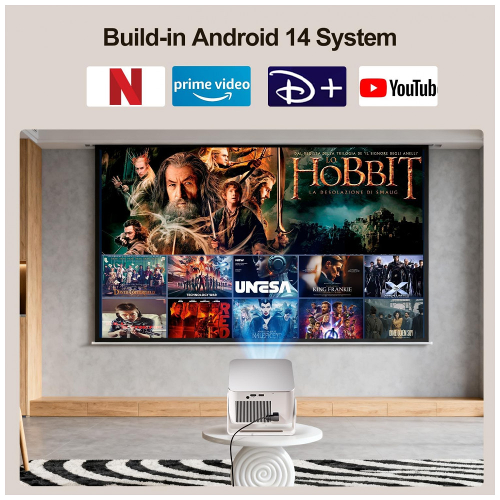 Desfrute de uma experiência de cinema em casa nativa em 1080P com suporte para 8K, com o projetor inteligente que oferece resolução nativa de 1080P e suporte robusto para decodificação 8K. Cada cena explode com detalhes realistas e clareza nítida, tornando-o o projetor de home theater 4K perfeito para noites de cinema. Desfrute de visualização vibrante e em alta definição em qualquer lugar, da sala de estar às estrelas, como projetor de filme ao ar livre. Qualidade de Imagem Brilhante de 600 ANSI Lumens – Experimente imagens nítidas com 600 ANSI lumens de brilho, cortando a luz ambiente. Este projetor portátil oferece cores vibrantes e alto contraste, garantindo uma experiência imersiva. Ideal como projetor para noites aconchegantes no quarto ou como projetor sem fio para cinema no quintal, ele dá vida ao seu conteúdo 4K Ultra HD com uma fidelidade visual impressionante. Último Android 14 OS e Amplo Armazenamento de 16GB – Alimentado pelo mais recente Android 14 OS, este inteligente projetor Magcubic oferece acesso instantâneo a inúmeras apps e serviços de streaming. Com 2GB de RAM e 16GB de ROM, desfrute de desempenho suave e responsivo e armazene milhares de filmes e jogos. É o projetor inteligente definitivo para um hub de entretenimento doméstico personalizado e sem interrupções. Foco Automático, Correção de Keystone 6D e Alinhamento Automático da Tela – Configure sua tela perfeita em segundos! Este mini projetor portátil apresenta Foco Automático inteligente, Correção de Keystone 6D, Evita Obstáculos Automático e avançado Alinhamento Automático de Tela. Ele entrega automaticamente uma imagem nítida e perfeitamente quadrada em qualquer superfície, tornando o projetor Magcubic ideal para projeção no teto ou rápida configuração ao ar livre. Wifi 6, Bluetooth 5.4 e Som Integrado de 12W – Desfrute de streaming ultra rápido e estável com conectividade avançada de WiFi e Bluetooth – Wifi 6 BT 5.4. Os alto-falantes estéreo Hi-Fi integrados de 12W oferecem um som rico que preenche o ambiente, criando uma experiência audiovisual verdadeiramente imersiva. Este projetor Bluetooth é seu projetor de home theater tudo-em-um, eliminando a necessidade de alto-falantes extras. Controle Facilitado com Controle Remoto Air Mouse Avançado – Assuma o controle total com o inovador controle remoto Air Mouse, uma marca da série de projetores Magcubic. Ele combina controle de botão tradicional com navegação precisa de ponteiro, facilitando a navegação em aplicativos e entrada de texto, tornando a experiência do projetor inteligente mais conveniente.
