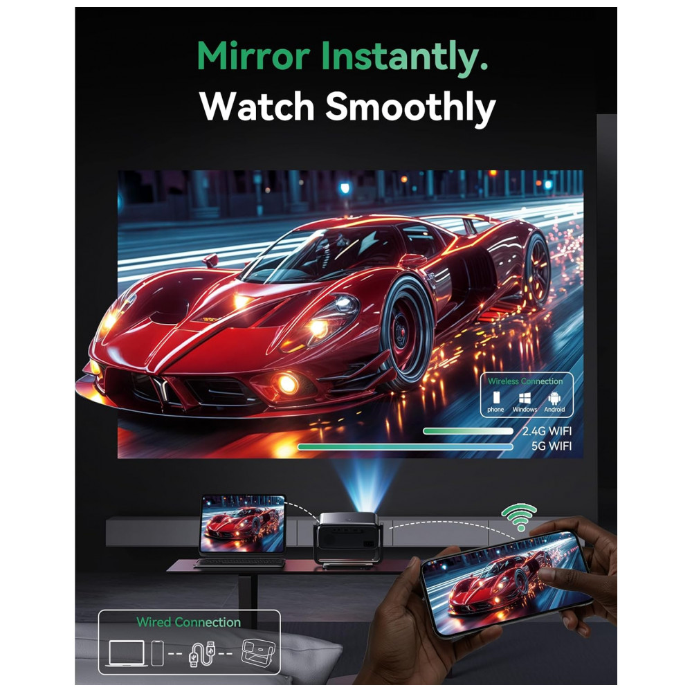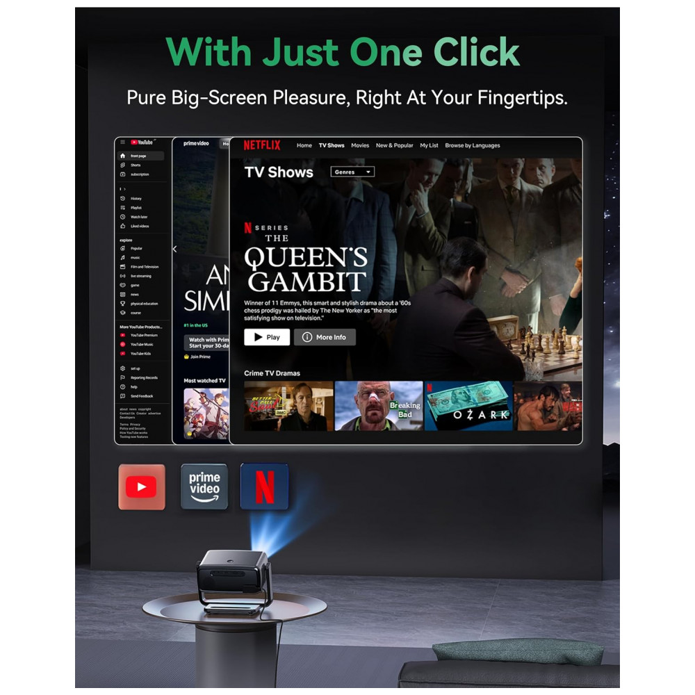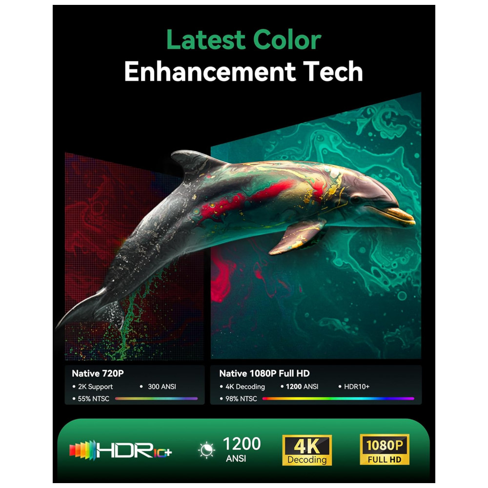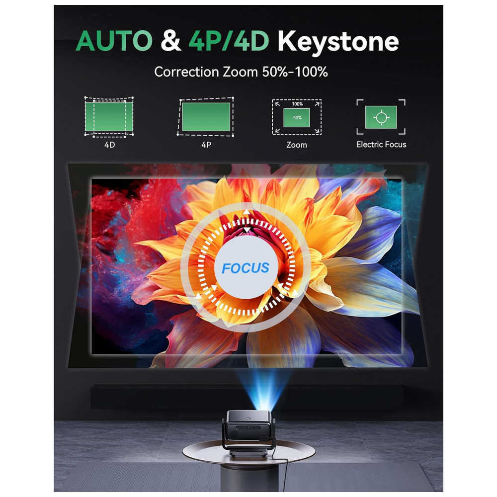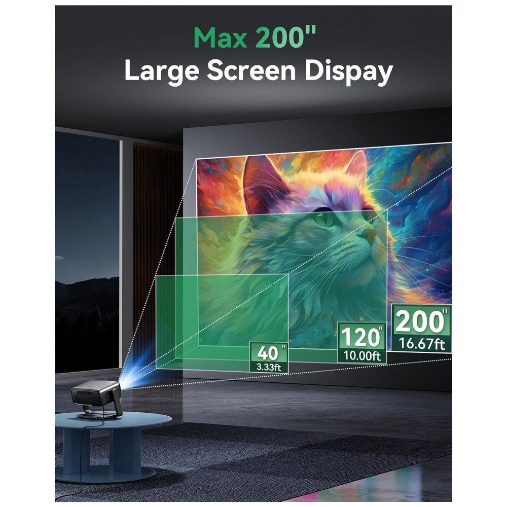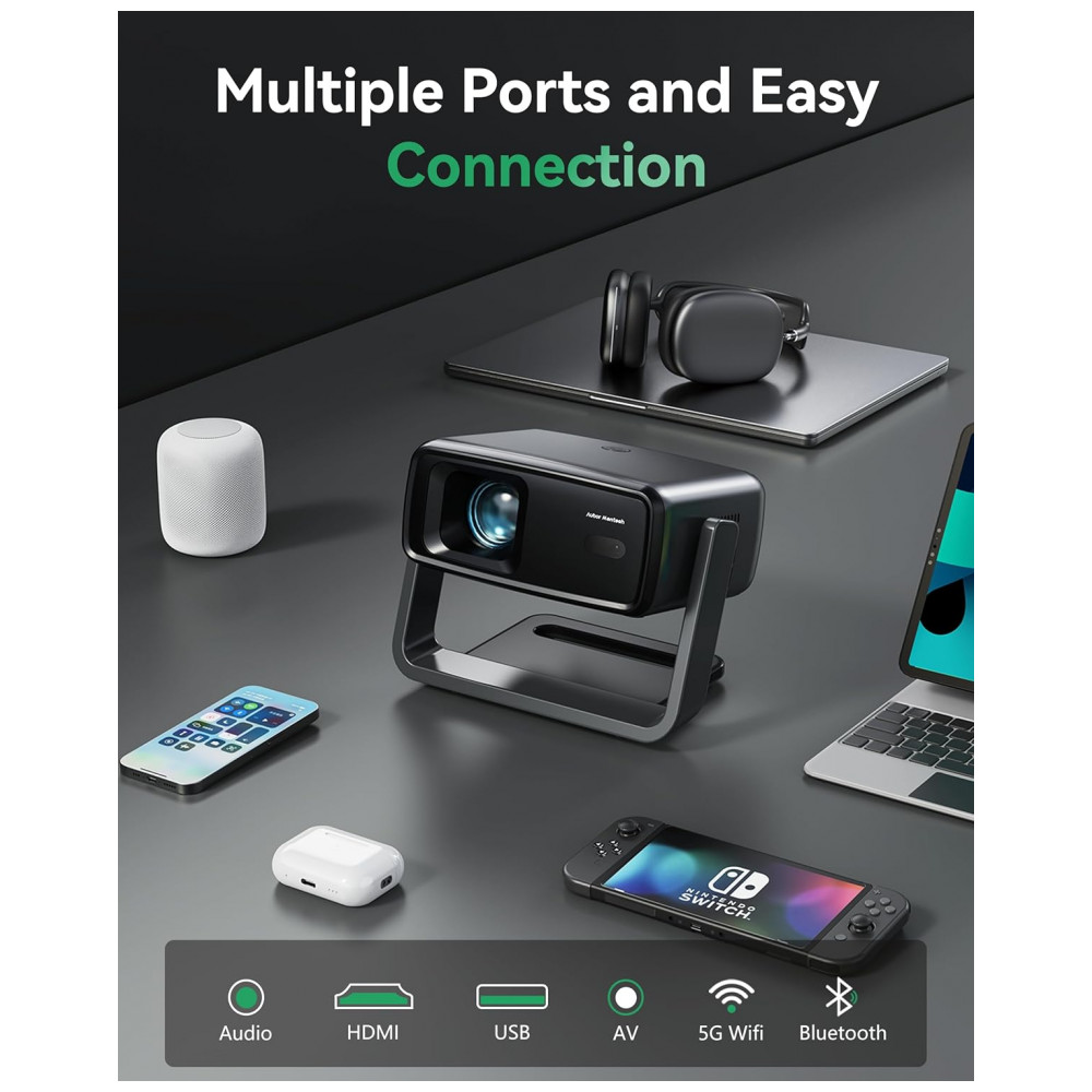 O projetor Aubor Mentech 4K oferece uma resolução nativa de 1080P 1920×1080, proporcionando imagens impressionantes e detalhadas. Com tecnologia avançada de LCD, oferece uma precisão de cores superior. Sua luminosidade é aumentada em até 95 em relação aos projetores 1080P padrão, garantindo detalhes mais nítidos e maior clareza. Com brilho de até 1200 ANSI lumens. O suporte HDR10 melhora ainda mais o contraste e a precisão das cores, reconstruindo meticulosamente cada quadro para revelar detalhes realistas. Com sistema operacional Smart TV integrado com aplicativos de streaming oficialmente licenciados. Possui som de nível de cinema com alto-falantes duplos de 20W certificados Dolby e processamento de graves. Tela gigante de 200″ com ângulo flexível de 180. O projetor possui foco elétrico automático, correção automática de keystone 4P4D, Dual-Band WiFi 6, Bluetooth 5.2 e espelhamento de tela. Compacto, portátil, leve e silencioso, pesando apenas 1 kg e operando com menos de 27dB. Perfeito para todas as ocasiões.