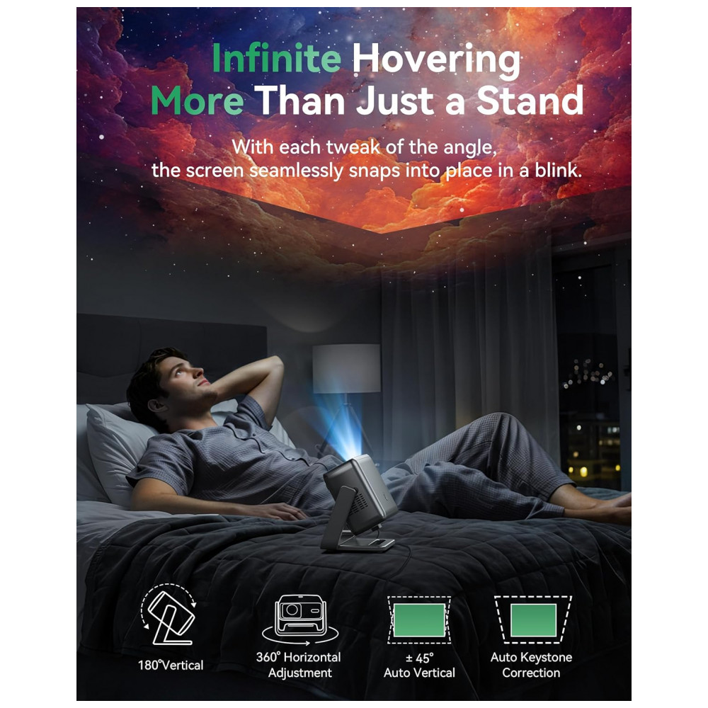 Projetor com WiFi e Bluetooth Suporte à Decodificação 4K 1200 ANSI 180 Rotativo com Projetor Mini Nativo 1080P Keystone Automático AUBOR MENTECH