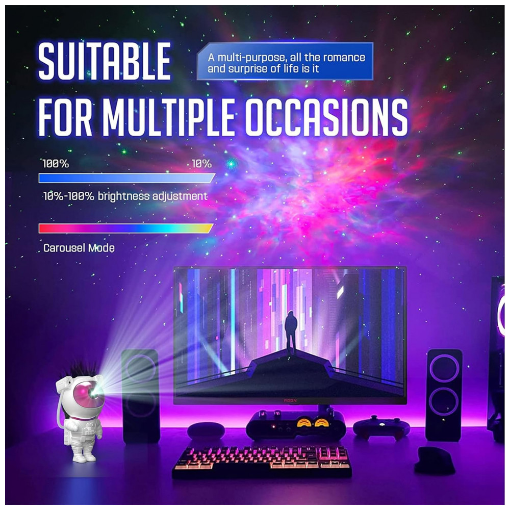 Projetor de Galáxia Astronauta Colorido Edição Especial Limitada Mooyran Estrela para Quarto Luminária de Teto Estrelada com Temporizador e Controle