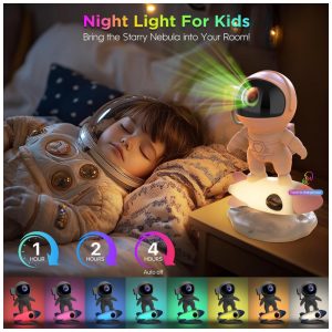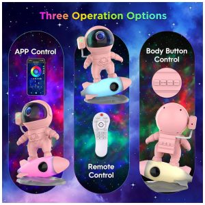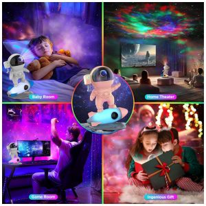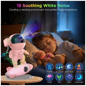 Projetor de Galáxia Astronauta para Quarto Luz de Estrela com Controle Remoto via App Sons Brancos Alto-falante Bluetooth Luz Noturna de Foguete p