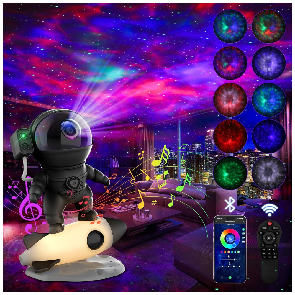 Projetor de Galáxia Astronauta para Quarto Luz de Galáxia com Controle Remoto via App Ruídos Brancos Alto-Falante Bluetooth Luz Noturna de Foguete