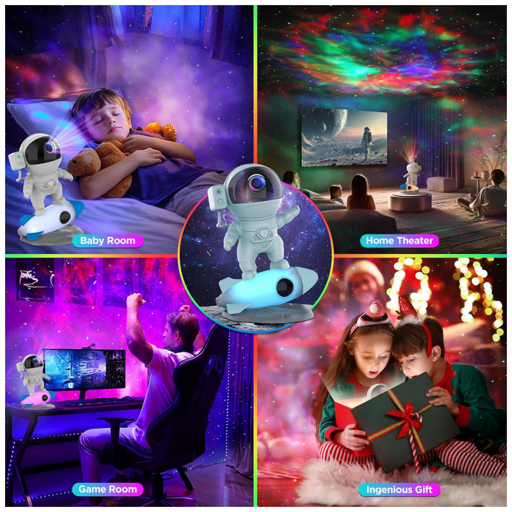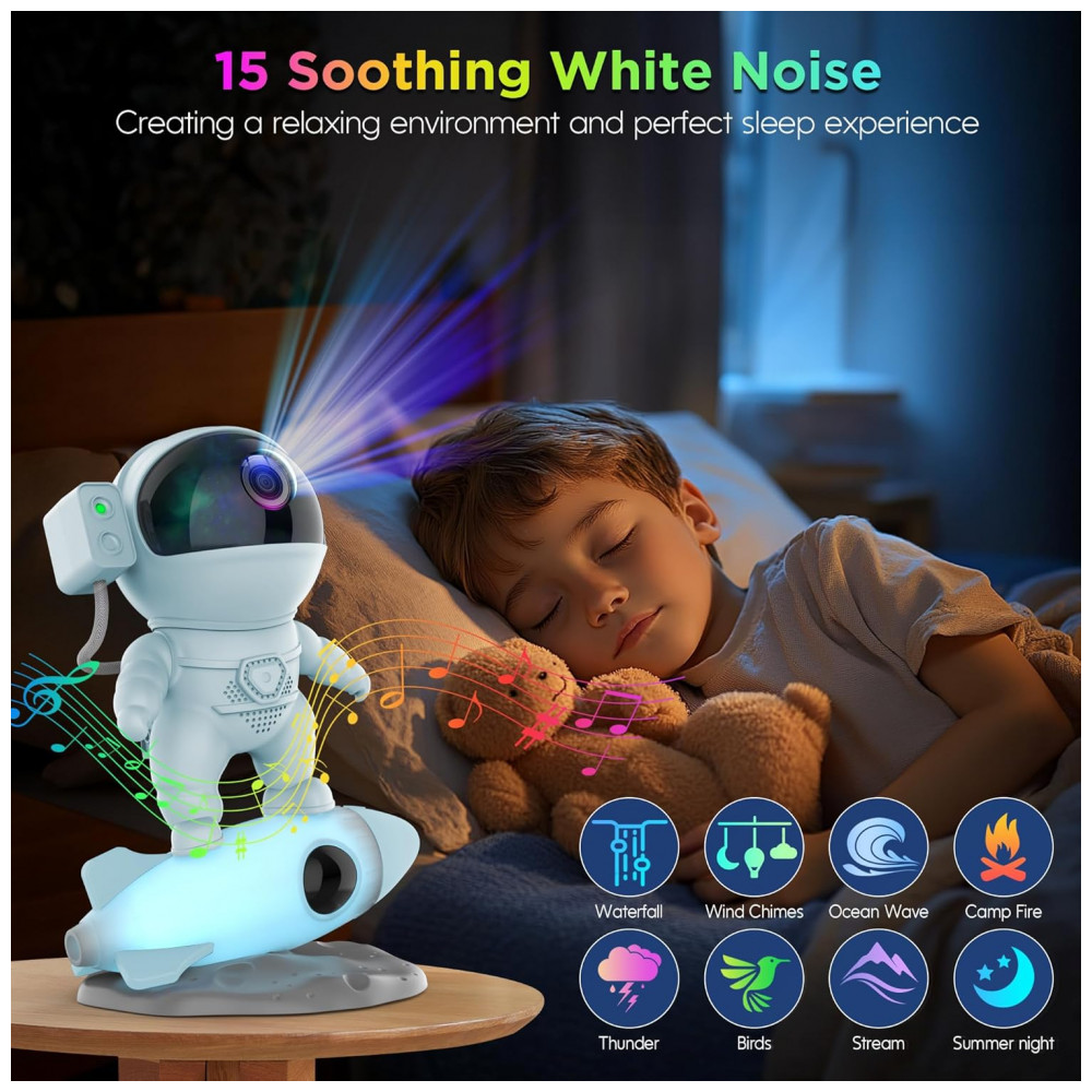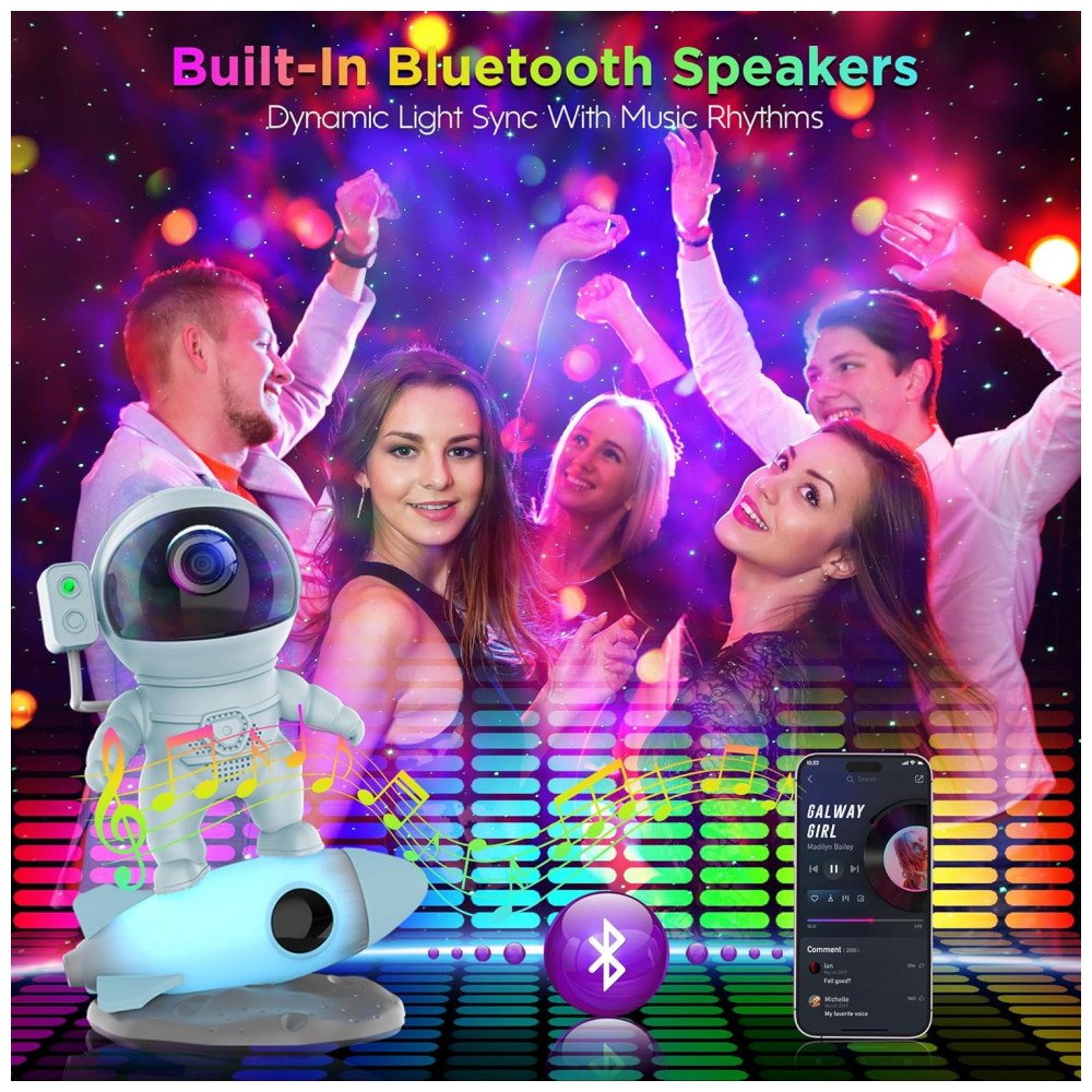 Projetor de Galáxia Astronauta para Quarto Luz de Galáxia com Controle Remoto via App Ruídos Brancos Alto-falante Bluetooth Luz Noturna de Foguete