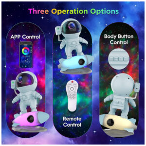 Projetor de Galáxia Astronauta para Quarto Luz de Galáxia com Controle Remoto via App Ruídos Brancos Alto-falante Bluetooth Luz Noturna de Foguete