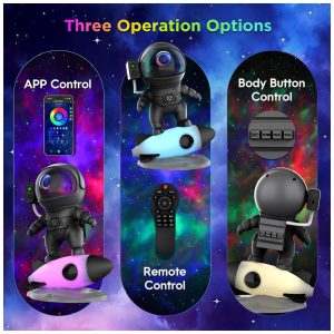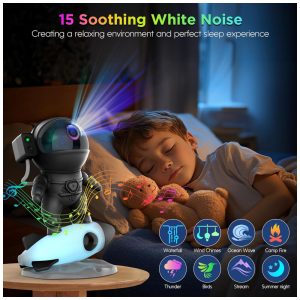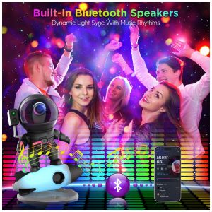 Projetor de Galáxia Astronauta para Quarto Luz de Galáxia com Controle Remoto via App Ruídos Brancos Alto-Falante Bluetooth Luz Noturna de Foguete