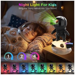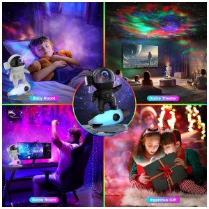 O Projetor de Galáxia Astronauta 4 em 1 combina um projetor, luz noturna, máquina de ruídos brancos e alto-falante Bluetooth em um único dispositivo. Com formato de foguete e 9 cores, ele combina 10 efeitos deslumbrantes de nebulosas com estrelas verdes cintilantes. Controle o fluxo e brilho em 4 níveis via controle remoto ou aplicativo, criando uma atmosfera serena e relaxante perfeita para noites de filmes, encontros românticos, jogos e decoração. Seu design flexível permite projetar a galáxia em diversas superfícies, enquanto o alto-falante Bluetooth 5.1 proporciona qualidade sonora de alta definição. A máquina de ruídos brancos com 15 opções ajuda na melhoria do sono e relaxamento. Um presente ideal para a decoração de quartos.