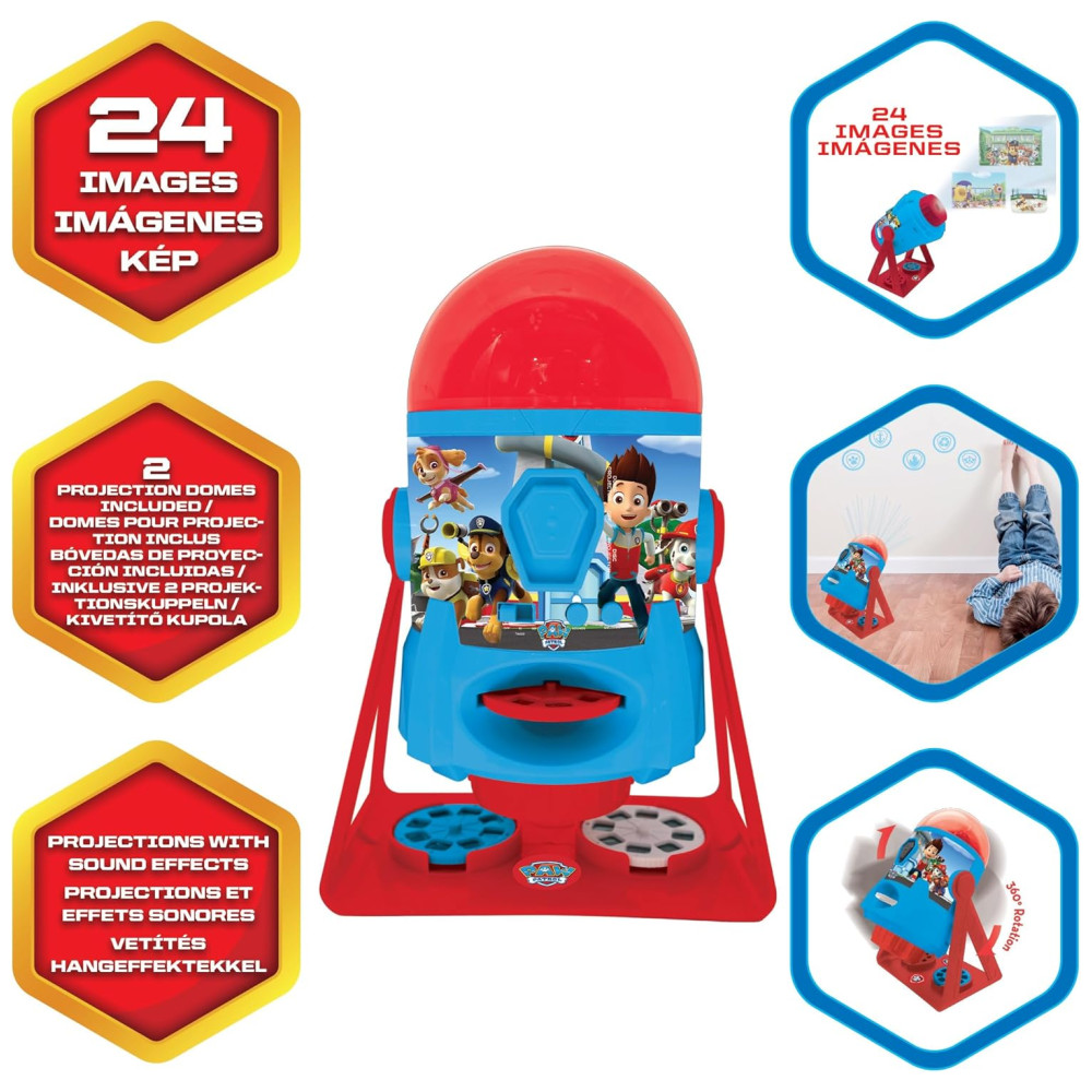 Projetor de Histórias Patrulha Canina com 3 Discos 2 Cúpulas Sons e Livreto LEXiBOOK