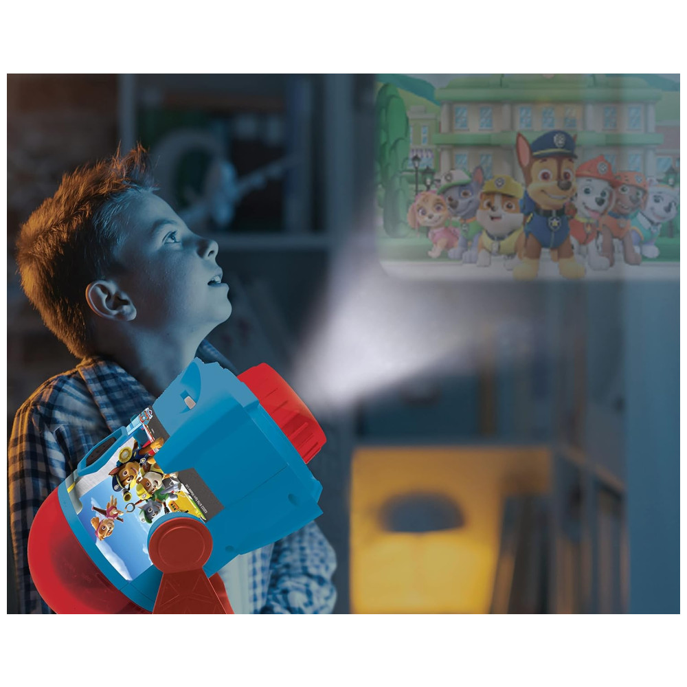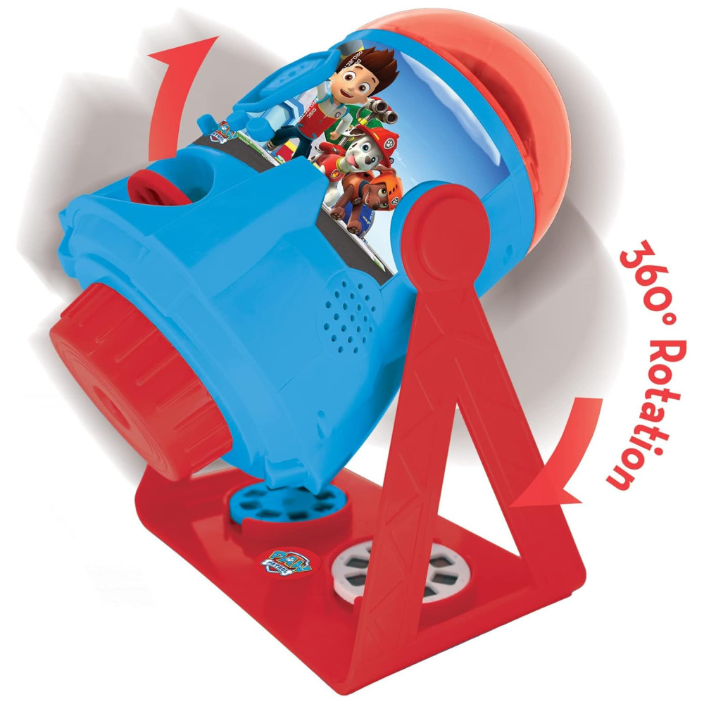 Projetor de histórias 3 em 1 Paw Patrol com sons e imagens intercambiáveis. O kit inclui 3 discos com 24 imagens do espetáculo, 2 cúpulas mostrando personagens Paw Patrol e um livreto para se divertir com os personagens. Desenvolva a criatividade, a imaginação e a aprendizagem de vocabulário enquanto cria histórias com seus personagens favoritos projetados nas paredes. O projetor também reproduz melodias inspiradas no universo Paw Patrol para guiá lo em suas descobertas. Possui um temporizador de 15 ou 30 minutos e funciona com bateria sem fio.