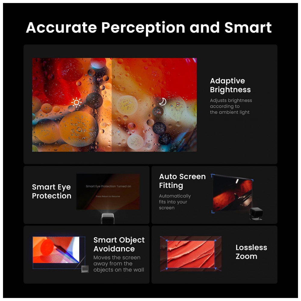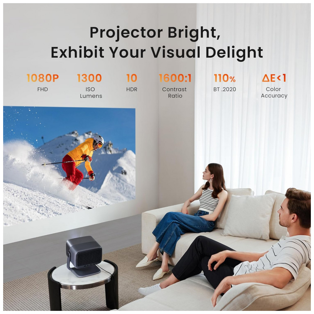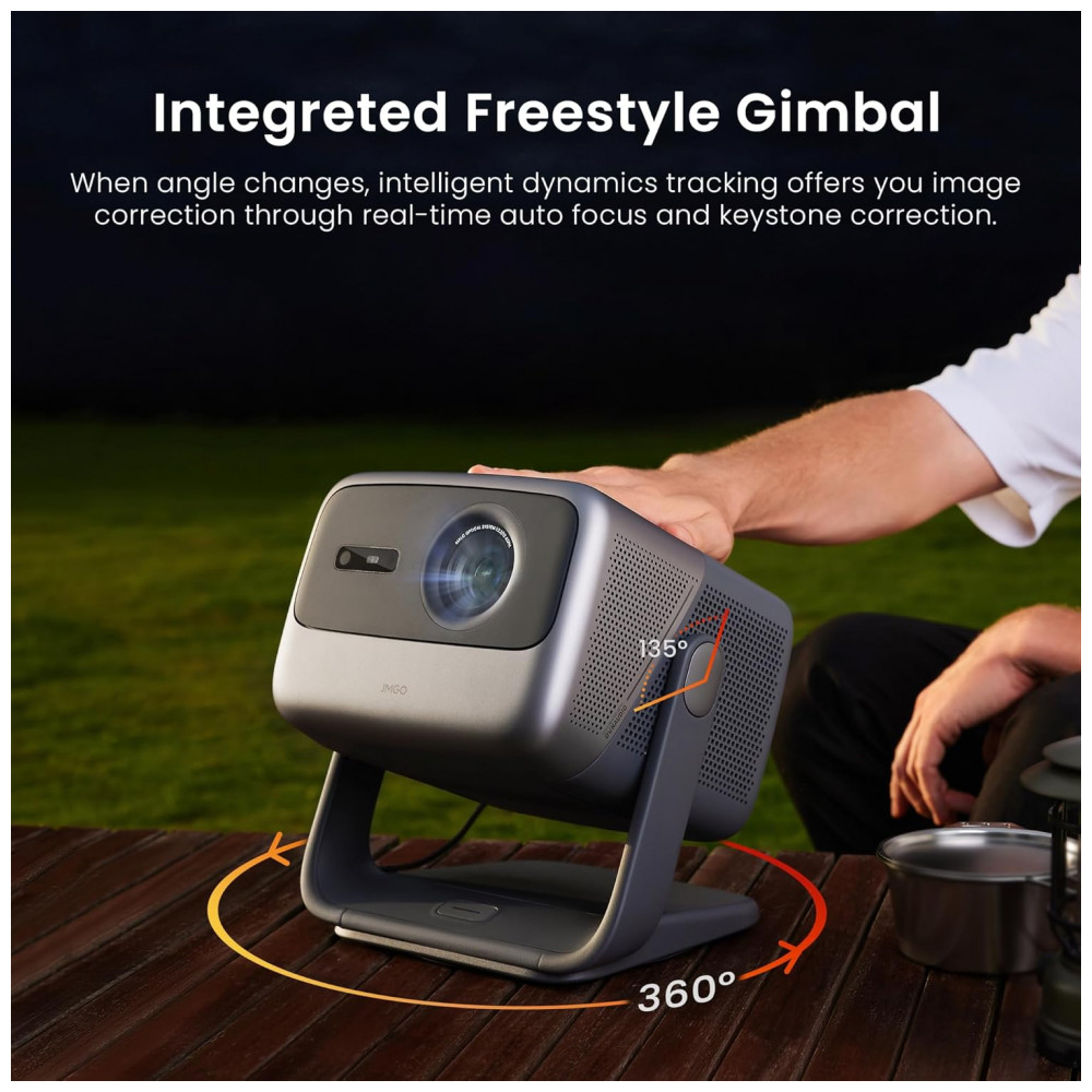 O Projetor JMGO N1S Pro entrega resolução nativa Full HD 1920 x 1080 pixel com suporte 4K, brilho de 1300 lumens e contraste 1600:1, projetando imagens nítidas em telas de até 300 polegadas, incluso HDR10 e cobertura 110% do espaço de cor BT.2020 para realismo aprimorado. O design DLP portátil possibilita ajuste 360° horizontal e 135° vertical com correção inteligente automática de quilha, foco e alinhamento por sensores 3D TOF e câmeras CMOS, garantindo imagens sempre perfeitas.