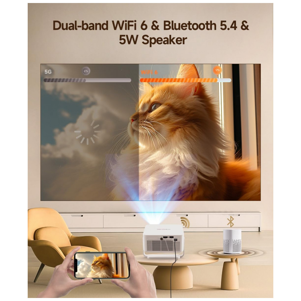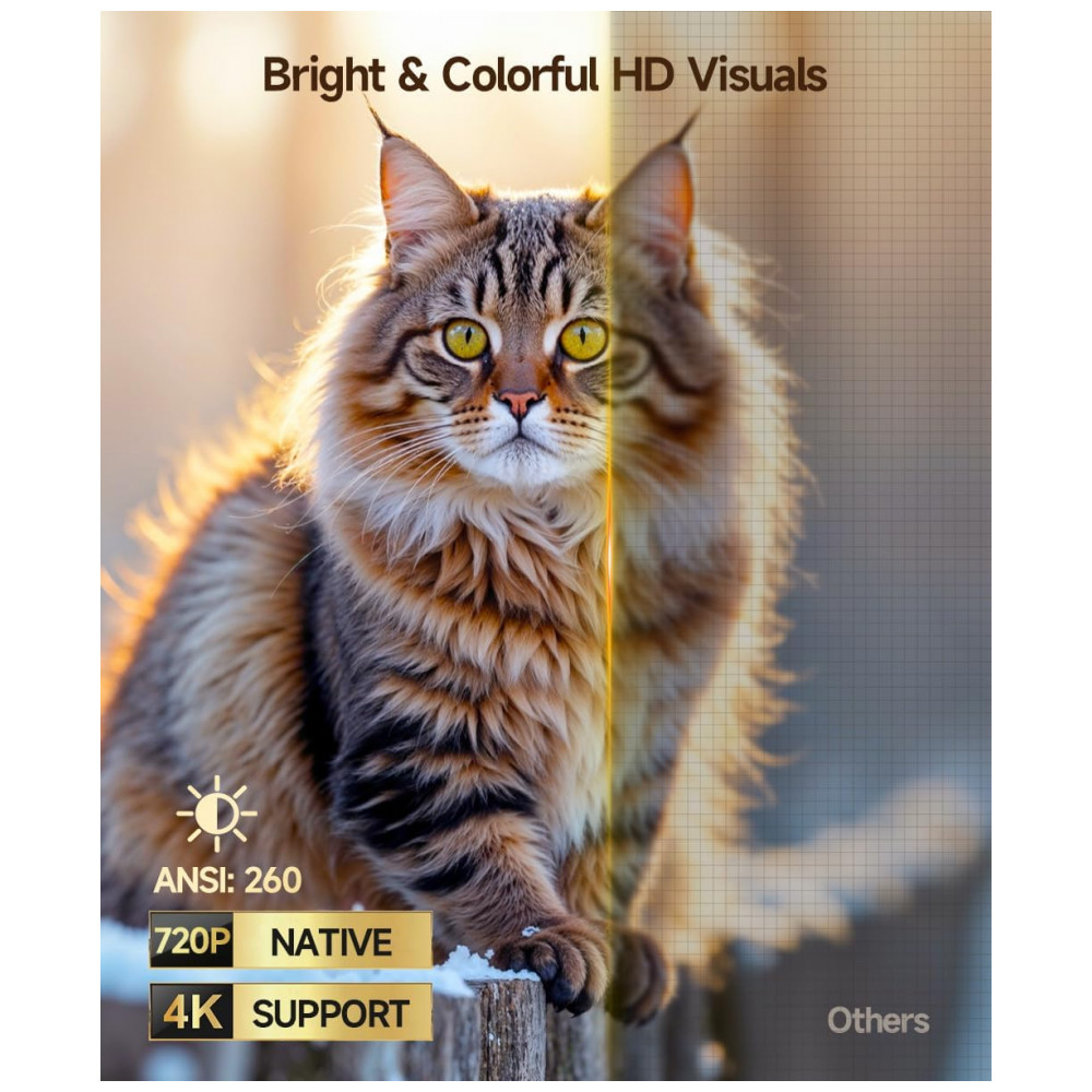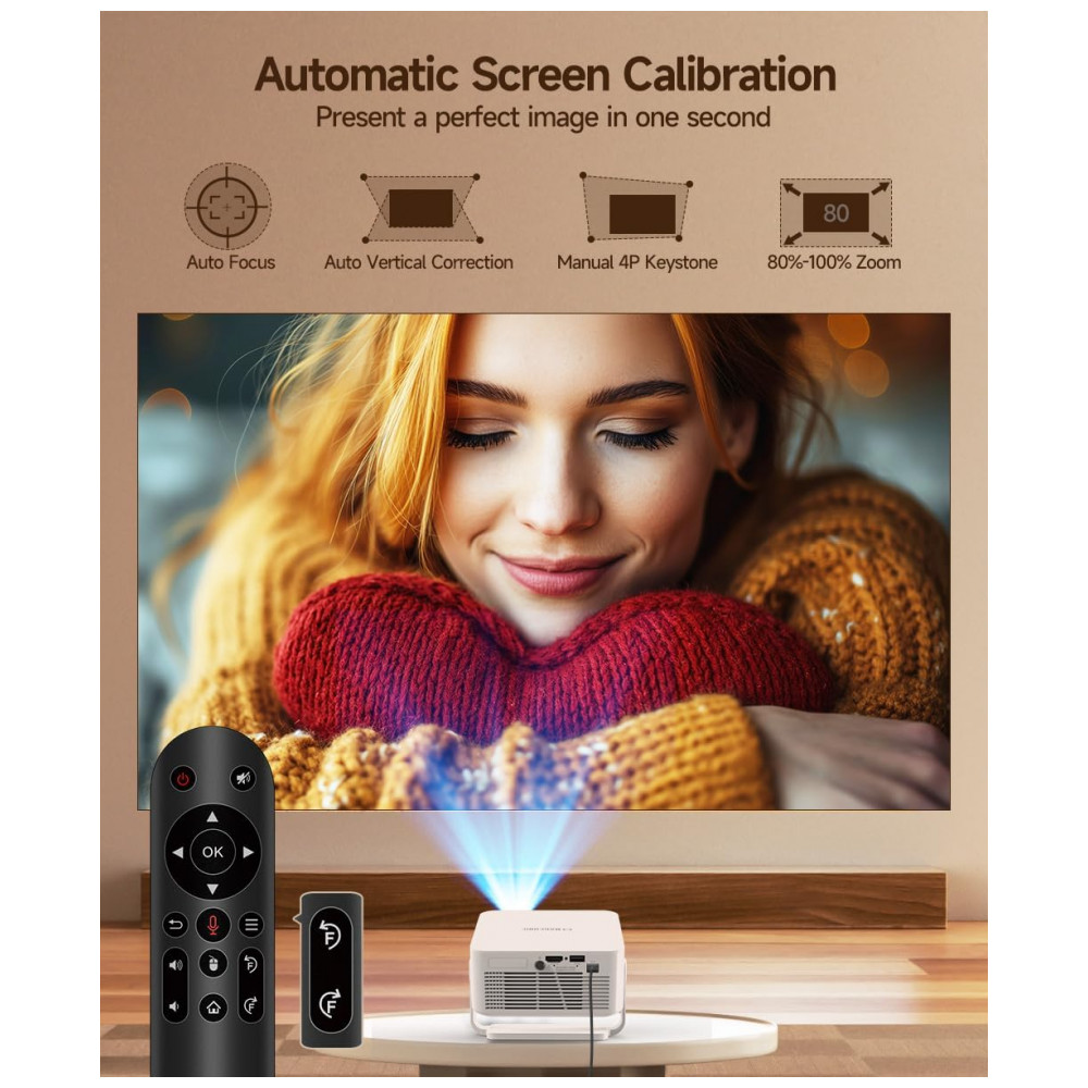 Aprimore sua experiência visual com nosso projetor inteligente de última geração 2025, equipado com Android 14 para desempenho superior. Acesse mais de 1 milhão de vídeos com apenas um clique. Perfeito para uso em casa ou portátil, oferece suporte a aplicativos mais rápidos, menos atrasos e entretenimento mais rico. Desfrute de uma clareza impressionante com nosso mini projetor! Com 260 ANSI lumens e contraste de 100001, ele proporciona detalhes nítidos e pretos profundos. Algoritmos avançados de LCD permitem imagens HDR com gerenciamento adaptável de cores e algoritmos não lineares proporcionam uma experiência de visualização em alta definição, ideal para noites de cinema imersivas. Alinhamento claro em segundos com AutoFoco Instantâneo e Correção Vertical Automática. Ideal para filmes, jogos e entretenimento familiar. Transforme qualquer espaço em um cinema doméstico com facilidade. Transmissão sem fio perfeita com WiFi 6 e Bluetooth 5.4, baixa latência, alto desempenho sem fio. Controle intuitivo e preciso com controle remoto avançado. Uma verdadeira revolução em entretenimento em casa!