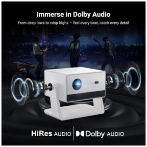 Este projetor inteligente possui um sistema de streaming integrado com TV inteligente, proporcionando acesso direto a milhões de vídeos. Compatível com Netflix, Prime Video, YouTube, Disney e mais de 10.000 outros vídeos. Com My App, App Store e Navegador Aberto, você pode explorar facilmente centenas de aplicativos pré-carregados ou transmitir vídeos online. Com 1500 ANSI lumens e resolução nativa de 1080P, este projetor com decodificação 4K oferece imagens brilhantes, nítidas e vibrantes. A tecnologia HDR10 otimiza dinamicamente o contraste e as cores para visuais realistas em todas as cenas. Com um suporte ajustável embutido de 180 graus, este projetor de decodificação 4K está pronto para ser usado em qualquer lugar. Sem tripés volumosos ou configurações complicadas, basta colocá-lo, inclinar para o ângulo perfeito e começar a assistir em segundos. Equipado com correção automática de keystone e foco manual, oferece conveniência e precisão confiável. Possui alto-falantes estéreo HiFi Dolby Audio de 10W, conectividade Bluetooth 5.2 e timer de desligamento automático. Com tamanho de projeção de até 200 polegadas e zoom ótico motorizado, proporciona uma experiência imersiva flexível. A conexão ultra-rápida do Wifi 6 permite espelhamento fácil de tela e transmissão de vídeo e imagens suaves e estáveis. Com múltiplas opções de conectividade e instalação, este projetor oferece flexibilidade sem comprometer a qualidade da imagem. Ideal para cinema em casa, jogos, apresentações e muito mais.