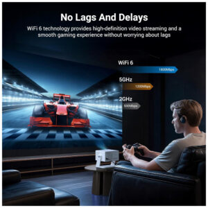 Características Especiais: Compatível com Netflix / Prime Video / YouTube, Apps Integrados, Suporte de Projetor 180°, Brilho de 1500 ANSI, 1080P Nativo, Decodificação 4K, Som Dolby Audio, Correção Automática de Keystone e Foco Elétrico, Timer de Desligamento Bluetooth 5.2, Wifi 6,