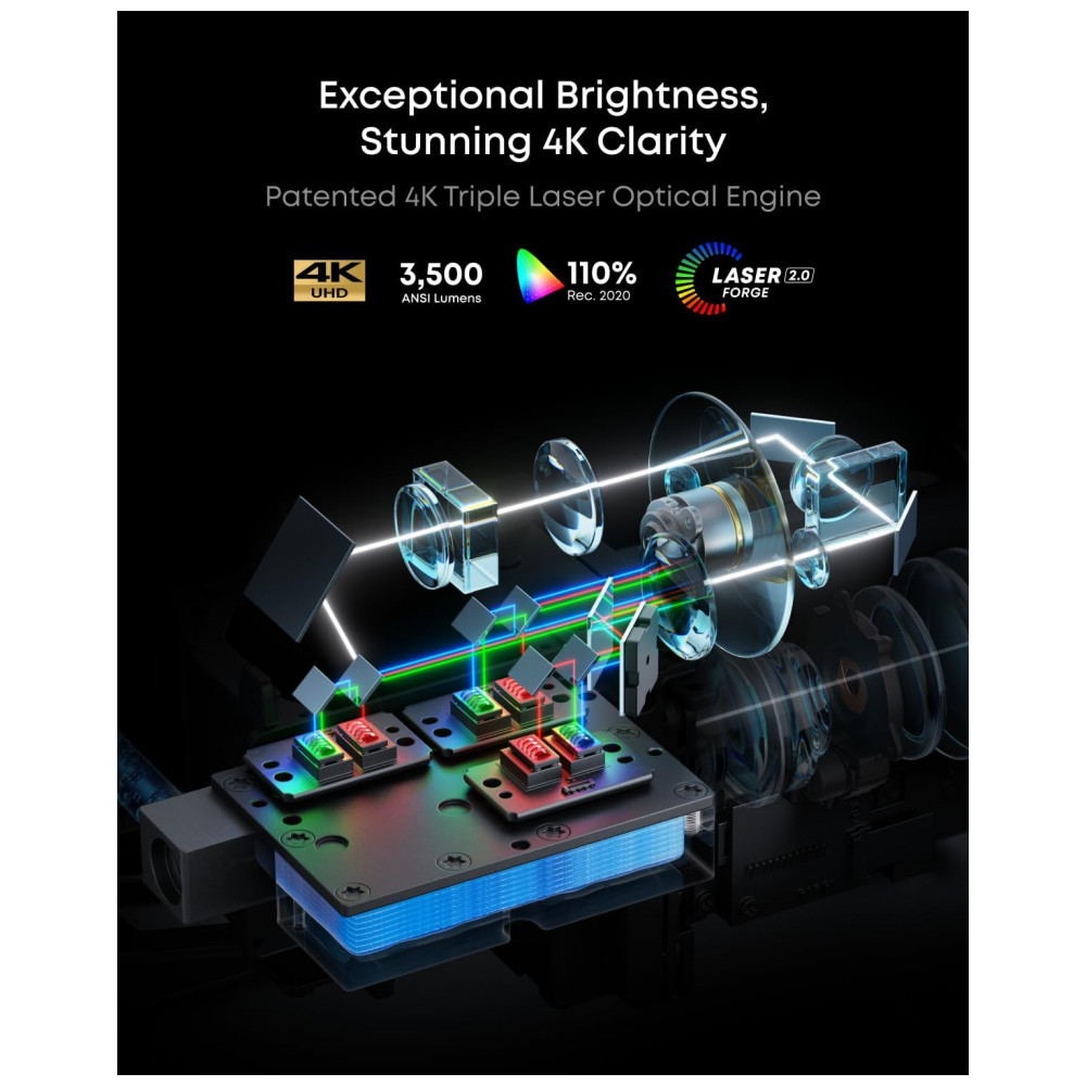 Projetor Laser 4K NEBULA Preto/Cinza Triple Laser 3500 ANSI 300″ Zoom Óptico 0.9-1.5 AI Dolby Vision X1