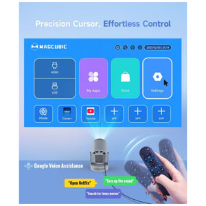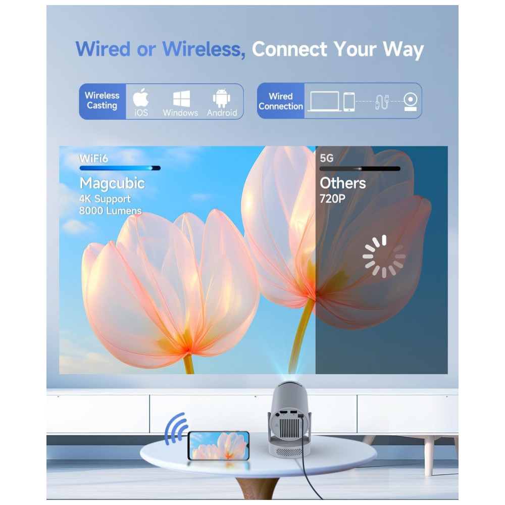 Projetor Magcubic Mini 4K Portátil com WiFi 6 e Bluetooth 5.4 Alto-falante Soundbase de 5W Projetor Inteligente com Ajuste Automático de Keystone