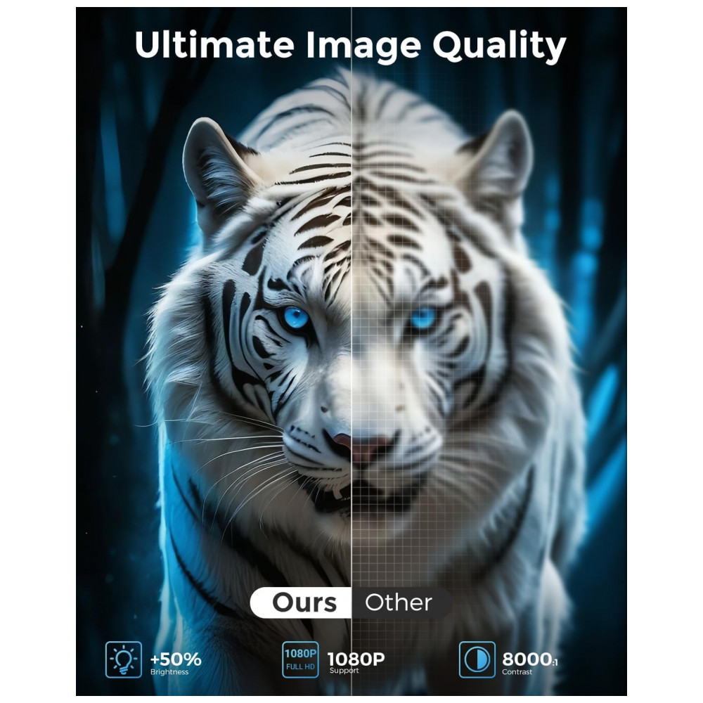 O Projetor Mini CiBest W13 é um projetor portátil com suporte a 1080P Full HD e tecnologia LED avançada, projetado para exibição de imagens em telas de 76 cm a 508 cm em ambientes internos ou externos. Ele utiliza método de iluminação uniforme para maior clareza nas bordas e tecnologia de reflexão difusa, compatível com smartphones, tablets, laptops, MacBooks, TV boxes e pendrives via portas HDMI, USB e AV.