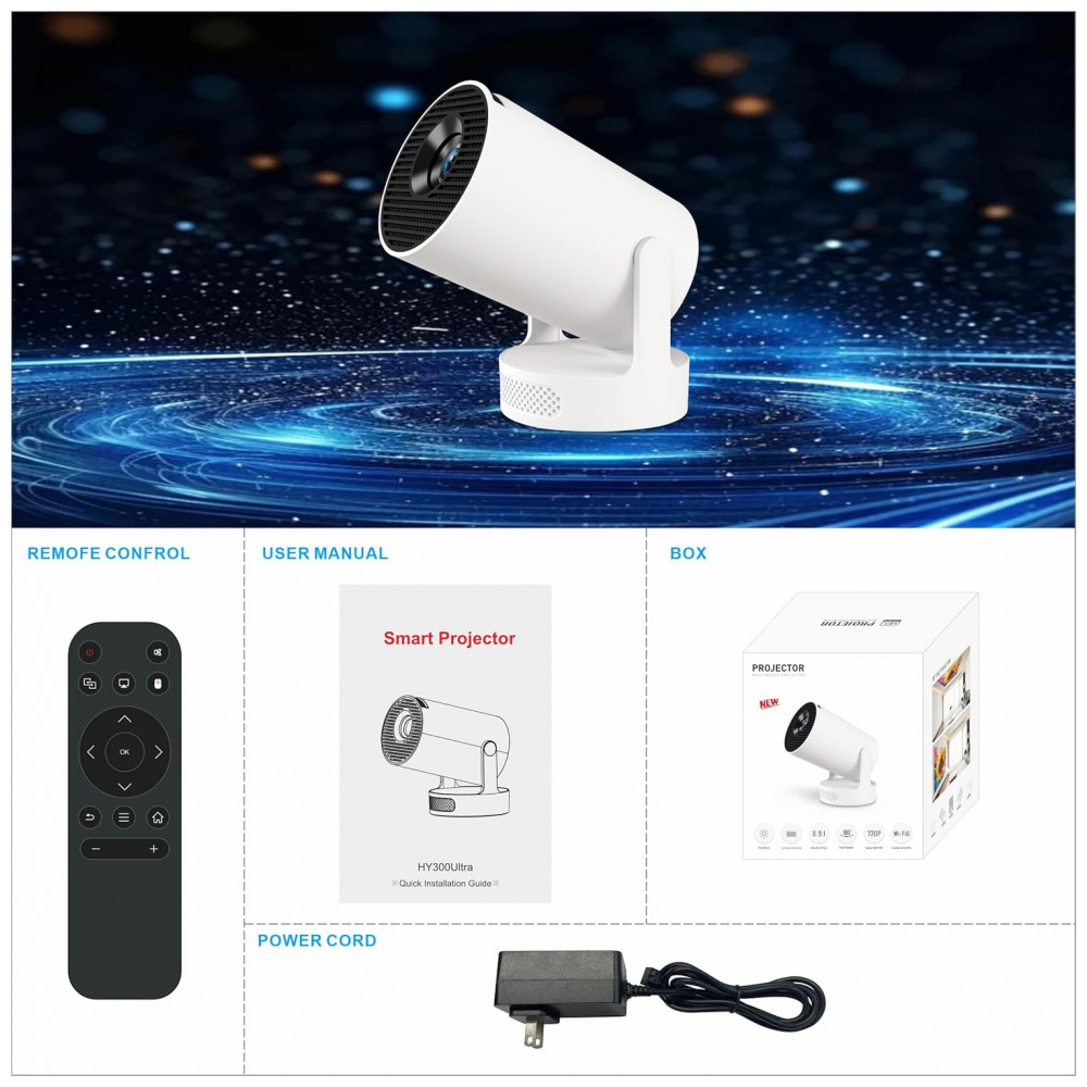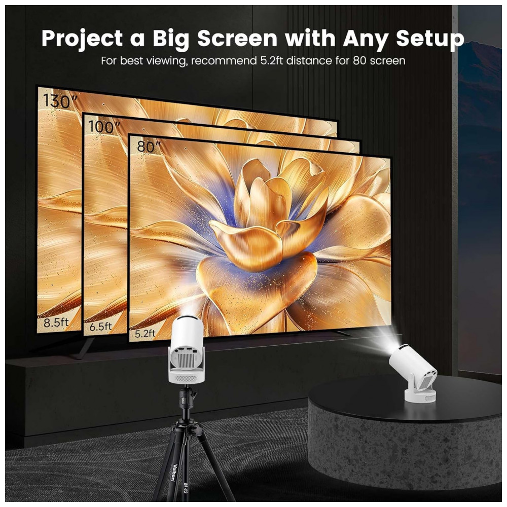 Projetor Mini DreamFair Suporte 4K 170 ANSI Correção Keystone Automática Alto-falante 5W Rotativo 210° HY300Ultra