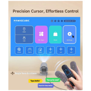 Para uma experiência de visualização excepcional, recomendamos uma distância de 1,58m para uma tela de 80 polegadas. Atualize o firmware para um desempenho ideal. O Projetor Mini ElectricFocus oferece clareza instantânea, com foco elétrico e correção automática vertical, garantindo uma imagem nítida e alinhada perfeitamente em todas as vezes. Desfrute de áudio e vídeo imersivos com resolução 720P com suporte 4K, 260 ANSI lumens e taxa de contraste de 80001. O alto-falante Soundbase de 5W aprimora tanto o áudio quanto os visuais, sendo perfeito para assistir filmes casualmente ou entretenimento em família. Este projetor integra múltiplos aplicativos com WiFi e Bluetooth, oferecendo acesso a 1.000.000 de vídeos com um clique, sem a necessidade de um dispositivo externo. Controle intuitivo e preciso com o controle remoto Air Mouse avançado, combinando controle remoto tradicional e mouse em um só, com suporte a comandos de voz. Design versátil e portátil, com opções de montagem no teto, mesa, tripé ou rotação de 180 graus. Leve e adaptável a qualquer ambiente ou ocasião.