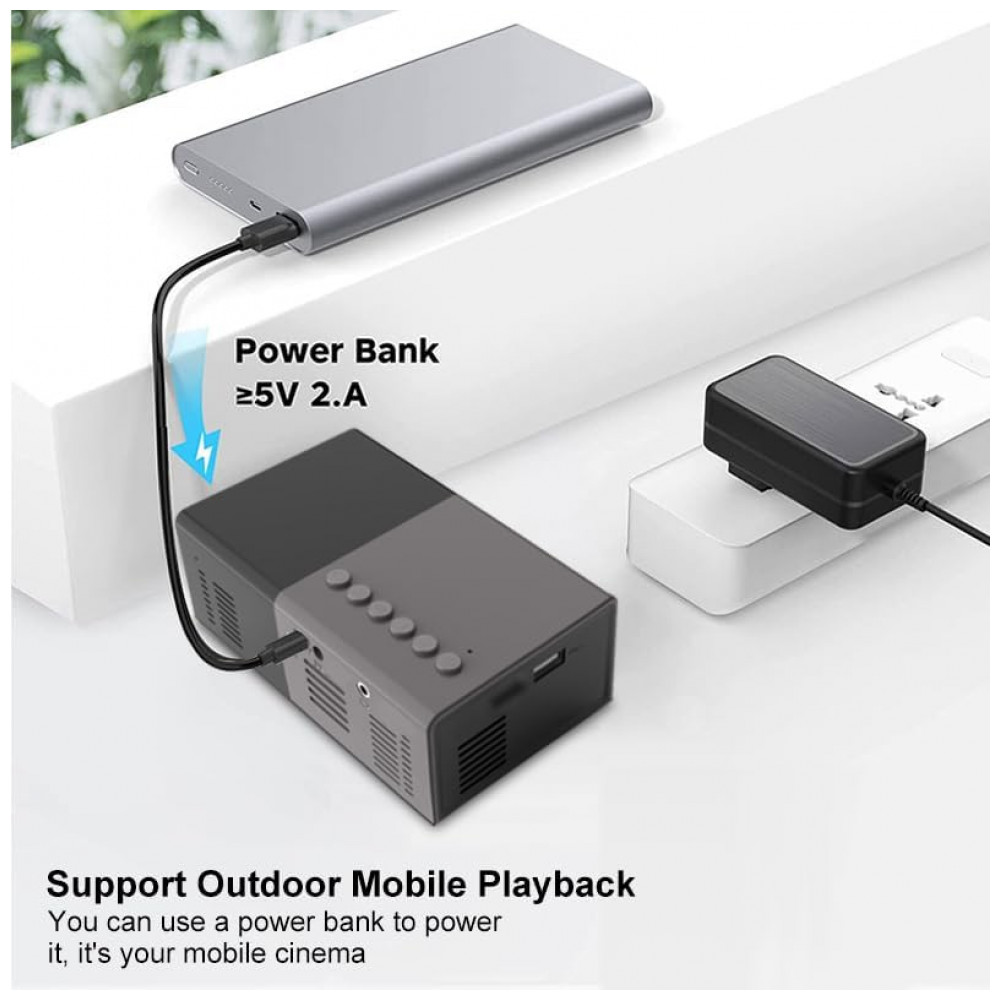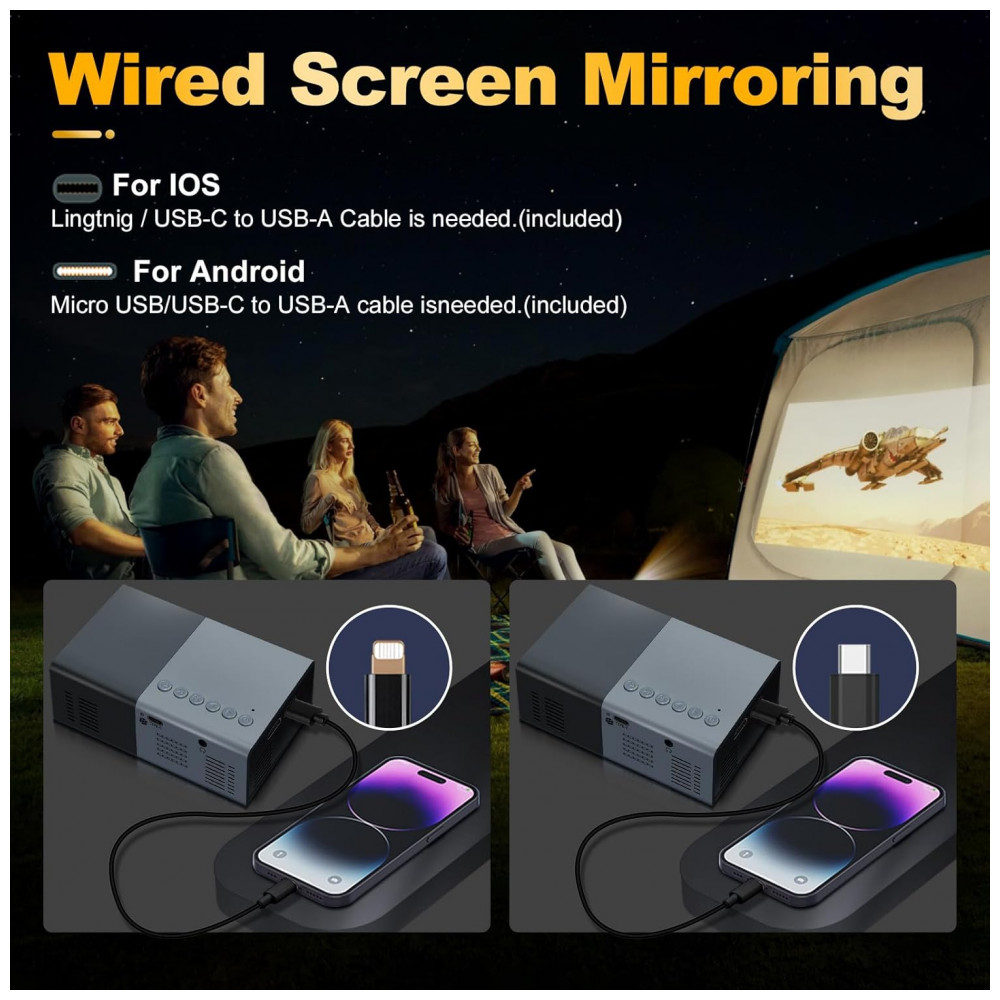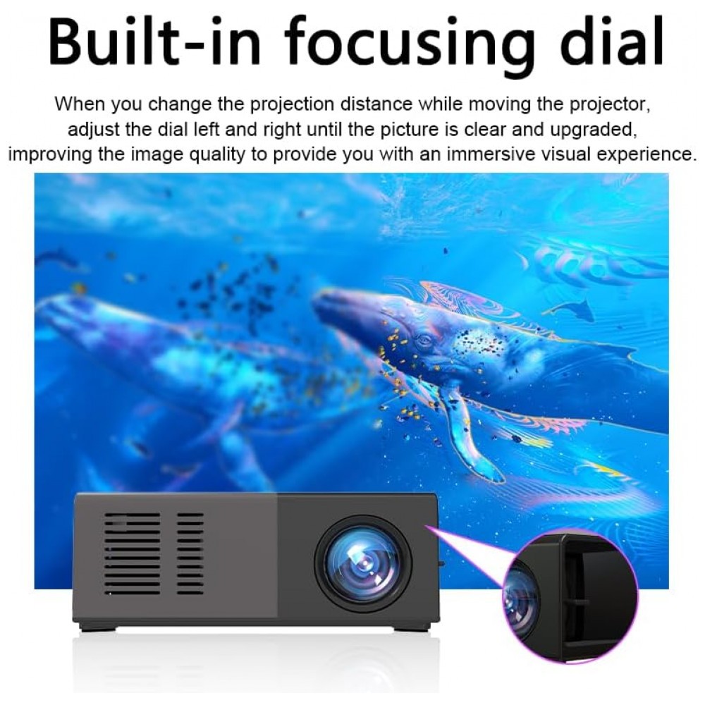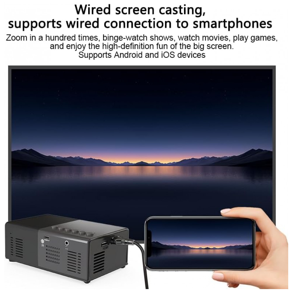 O Geylnxng J9-A é um projetor mini portátil com resolução nativa 1024×720 e suporte a 1080P, adequado para entretenimento infantil, filmes internos, jogos e uso doméstico portátil. Compacto com tamanho de bolso, facilita transporte para viagens, camping ou RV, alimentado por fonte externa 5V/2A como power bank ou carregador de parede, sem bateria interna.