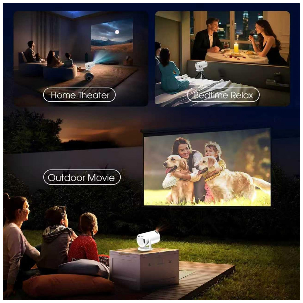 Suporta proporção 1.3:1, tamanhos de projeção de 89 cm a 305 cm (35 a 120 polegadas) em distâncias de 0,91 m a 5,49 m. Compatível com tripé , montagem mesa/teto/parede/piso, via HDMI, USB, 3.5mm fone e mouse. Indicado para smartphones, laptops, consoles, TV sticks e pendrives.