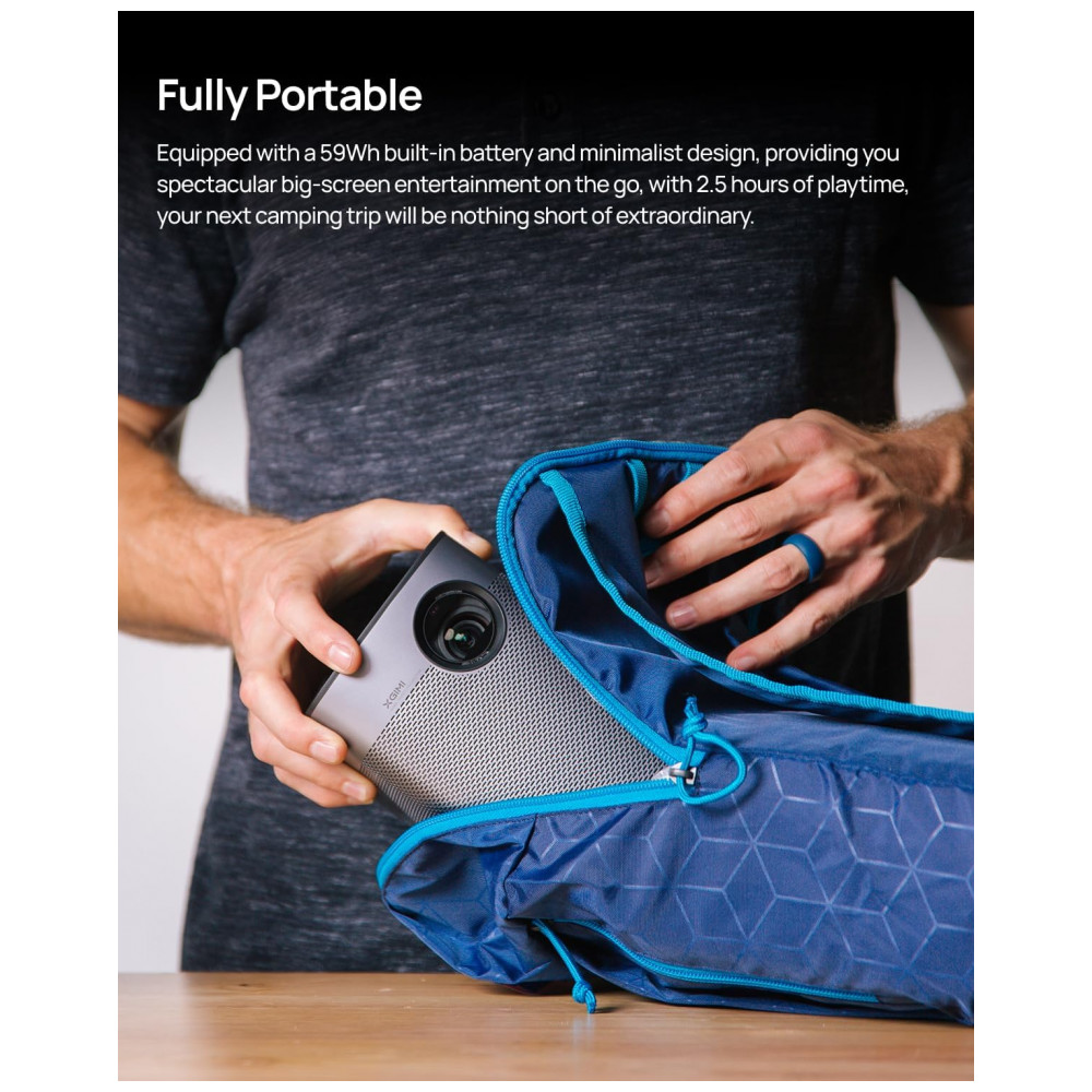 O design compacto facilita o transporte e a instalação em mesas, estantes e suportes específicos, atendendo tanto a sessões de cinema em casa quanto a apresentações e uso recreativo em viagens. O projetor foi projetado para operação em ambientes internos, com refrigeração adequada e nível de ruído compatível com uso residencial.