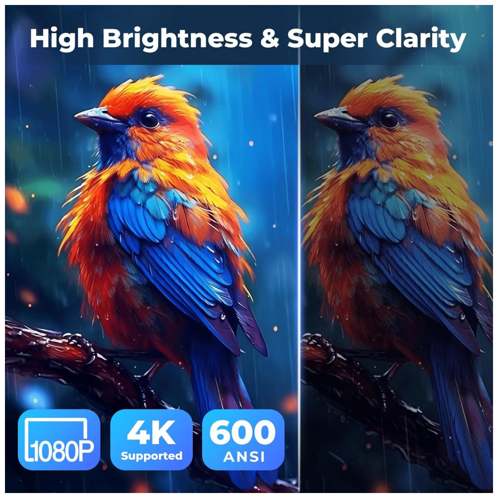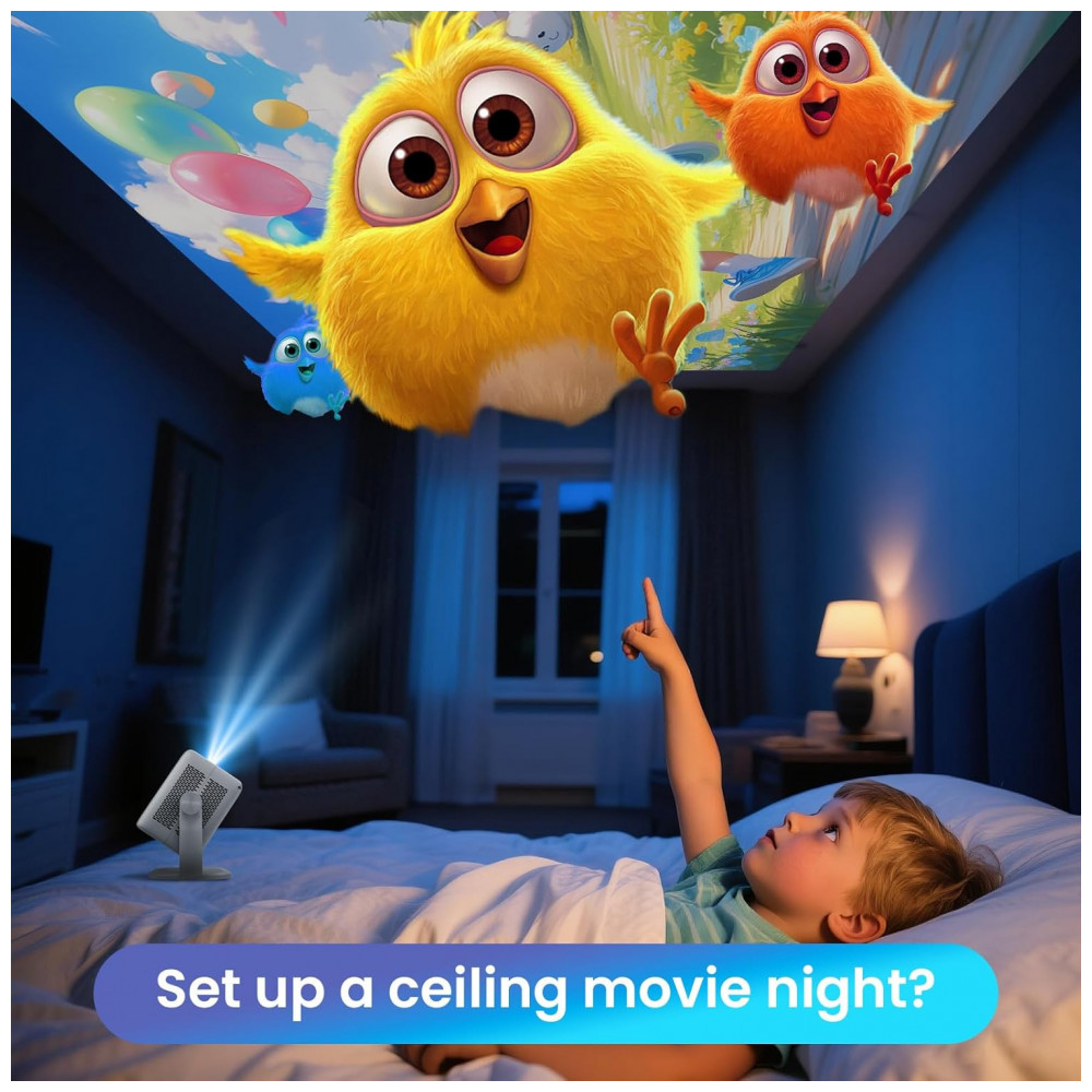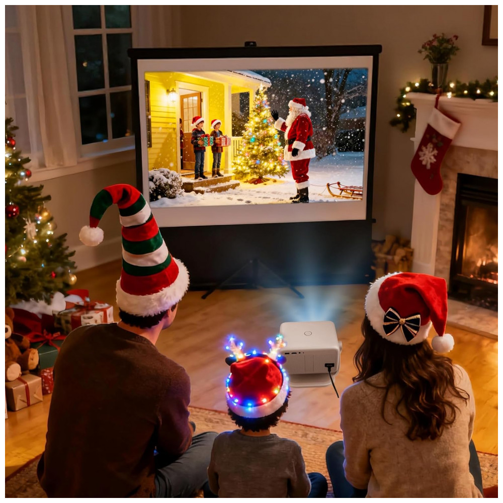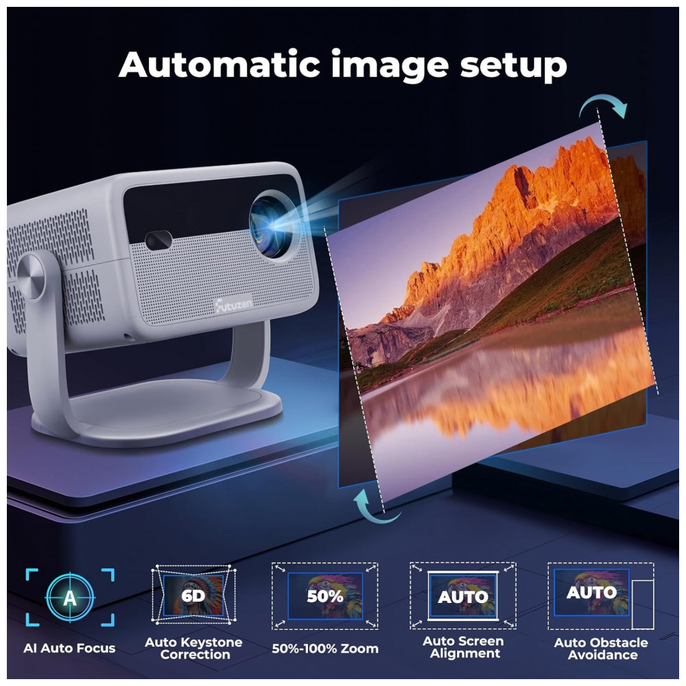 O Projetor Smart Futuzen P30 NF-US é um dispositivo portátil com resolução nativa Full HD 1920×1080 pixels e suporte a 4K. Serve para projeção de vídeos em ambientes internos ou externos, compatível com smartphones, laptops, tablets, consoles de jogos e TV sticks via HDMI, USB ou conector 3.5mm. Seus diferenciais incluem foco automático, correção keystone, alinhamento de tela, controle por voz e rotação de 360° para montagem em piso, teto ou mesa.