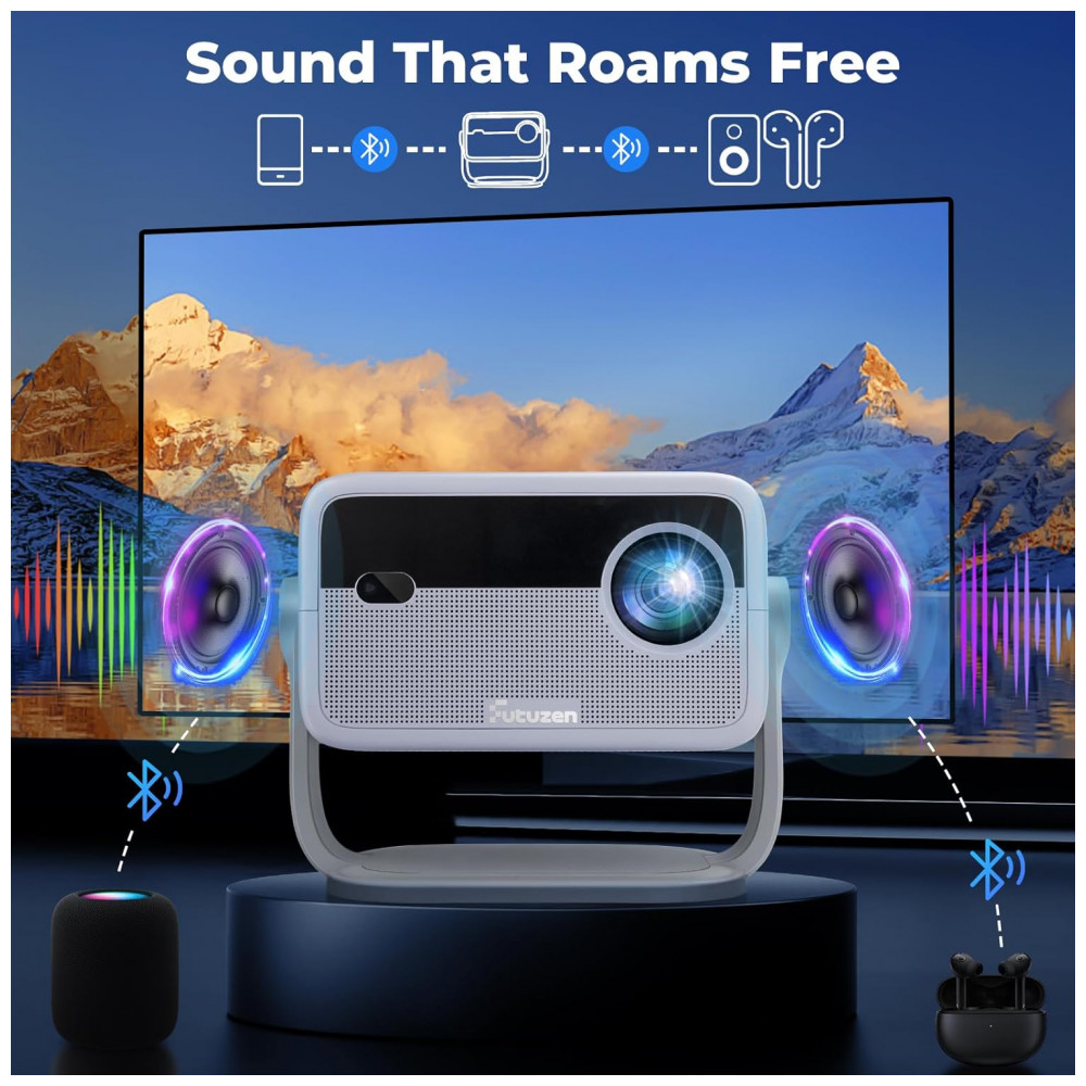 Projetor Smart Futuzen Cinza WiFi Bluetooth 500+ Apps 1080P Rotação 360° P30 NF-US 80W