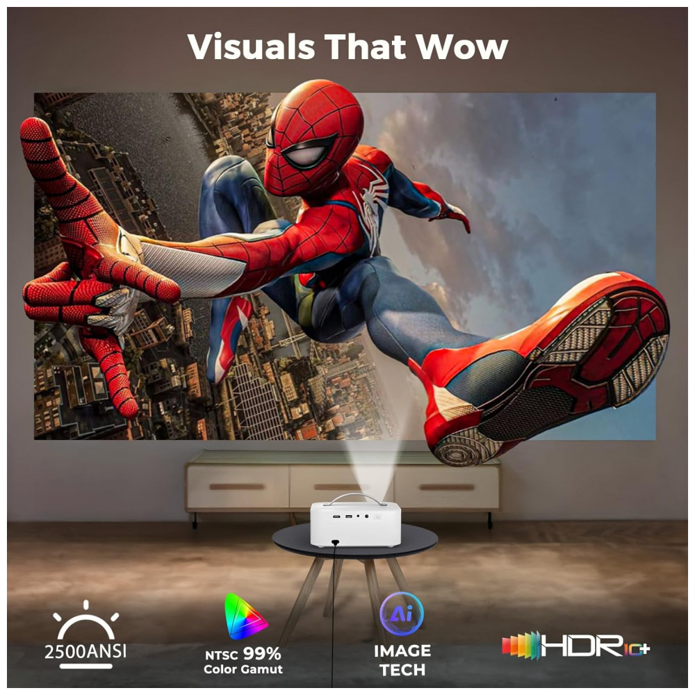 O Lisowod L61Pro é um projetor portátil com resolução nativa 1920×1080 e suporte a decodificação 4K, equipado com sistema operacional Movin 2.0 AI e processador quad-core A55 para home theater interno/externo, jogos e streaming. Inclui apps oficiais pré-instalados como Netflix, YouTube, Prime Video e Disney+, permitindo acesso direto sem dispositivos extras, com WiFi 6 dual-band e Chromecast integrado para espelhamento iOS/Android.
