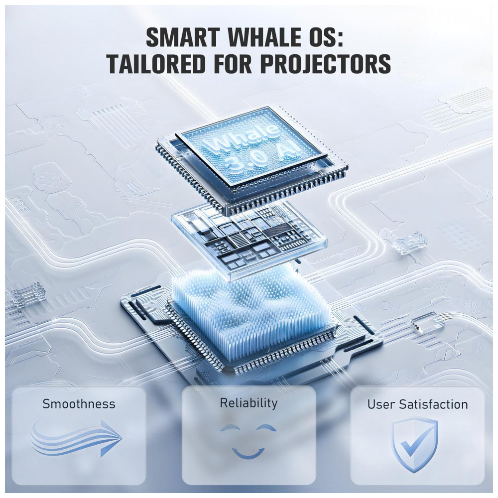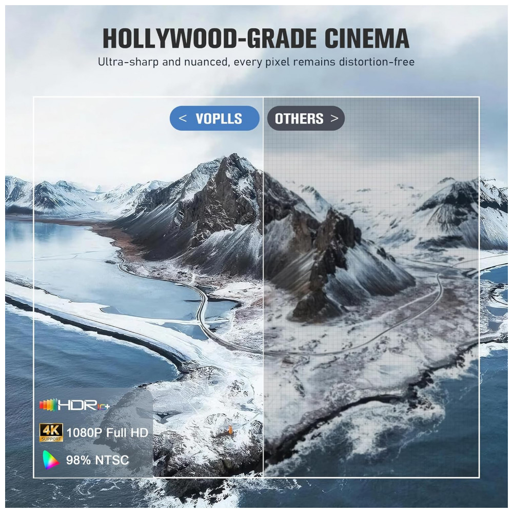 O Projetor Smart Mini VOPLLS T6 é um dispositivo portátil com sistema operacional Whale OS 3.0 AI, compatível com aplicativos como Netflix, Prime Video e YouTube diretamente, sem necessidade de dispositivos externos. Possui resolução nativa 1080p com suporte a decodificação 4K em apps internos, HDR10+ e 98% NTSC para reprodução de cores ampla, ideal para uso como projetor de cinema em casa ou externo. Seus ajustes automáticos de foco, quilha, evasão de obstáculos e alinhamento de tela garantem imagem retangular precisa em segundos, com operação silenciosa ≤27 dB.