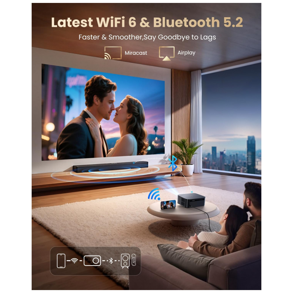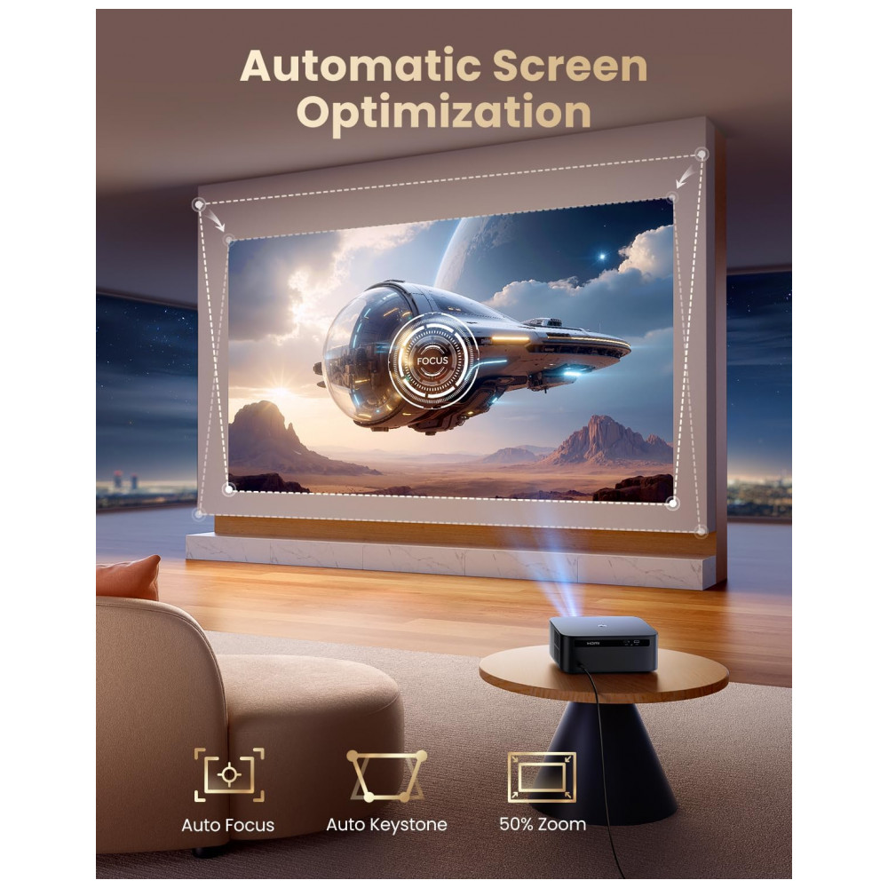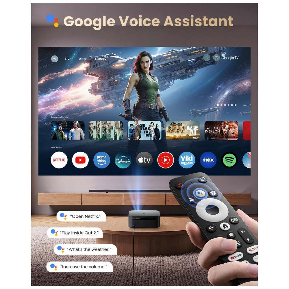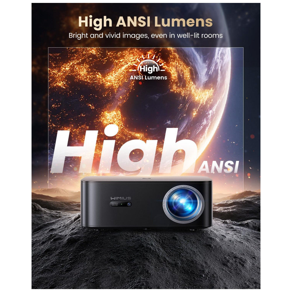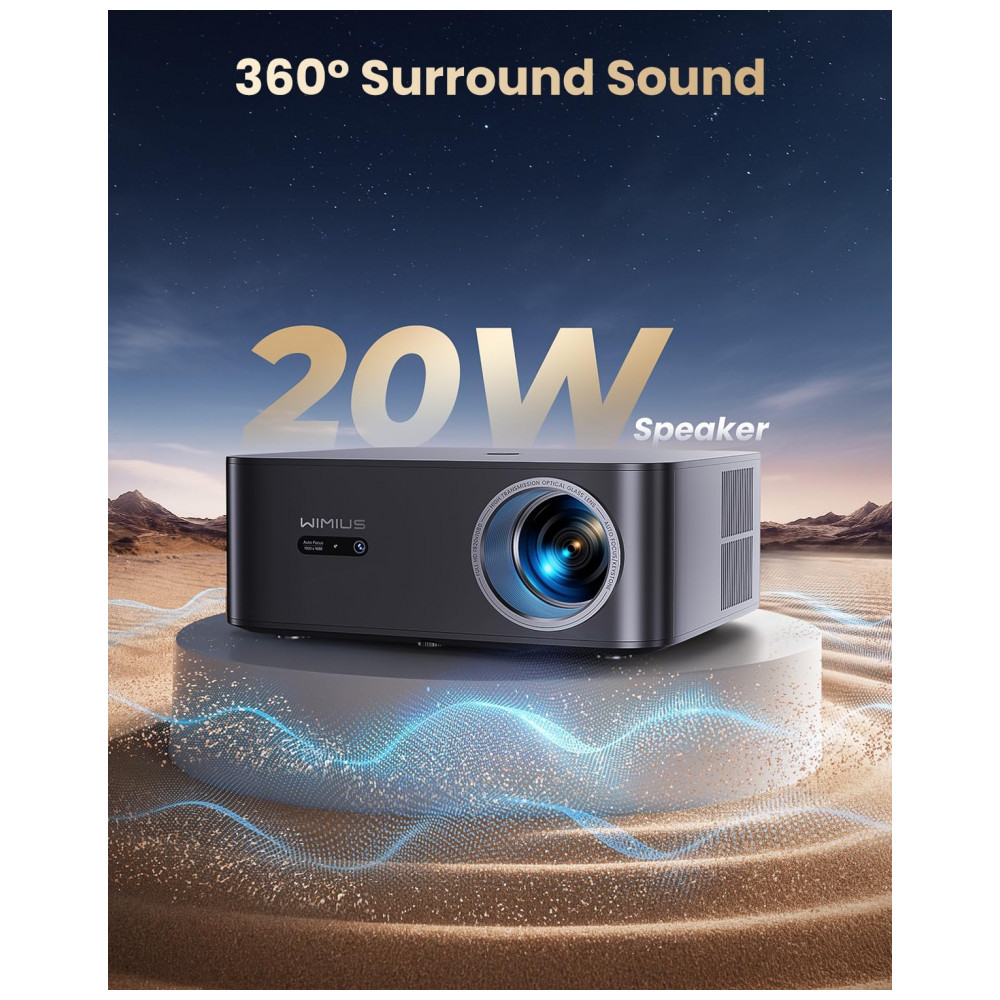 O Projetor Smart WiMiUS K13 é um dispositivo portátil com resolução nativa Full HD 1920×1080 pixels e suporte a 4K. Serve para projeção de vídeos em ambientes internos ou externos, compatível com smartphones, laptops, tablets, consoles PS5/Switch e alto-falantes via WiFi 6, Bluetooth 5.2, HDMI ARC, USB 2.0 ou conector 3.5mm. Seus diferenciais incluem sistema Google TV oficial com apps YouTube, Disney+, Prime Video e HBO Max, controle por voz Google Assistant, foco e correção keystone automática em 3 segundos.