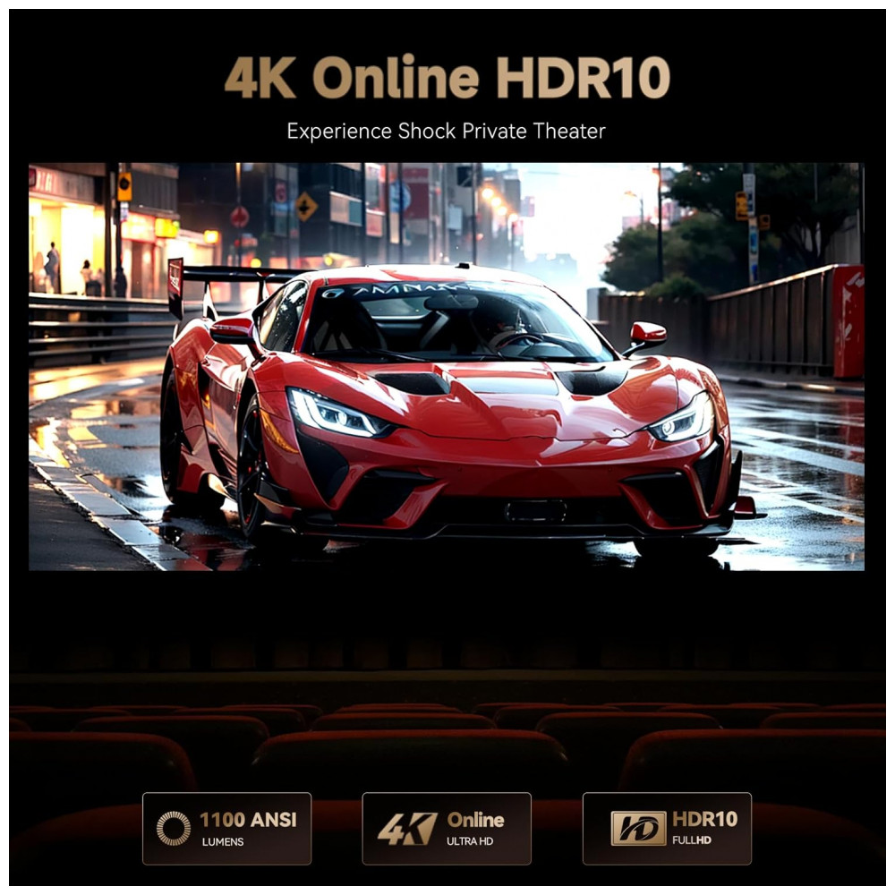 Desfrute de streaming contínuo com o projetor inteligente oficial do Google TV 2025 integrado. Acesse Netflix, Disney, Prime Video, YouTube e muito mais sem dispositivos extras. Com 2GB de RAM e 16GB de armazenamento, aproveite entretenimento suave e pronto para aplicativos diretamente da caixa. Com suporte a 4K e tecnologia HDR10, este projetor é reconhecido por sua qualidade online de 4K, decodificando nativamente 1080P 4K HDR10 para detalhes nítidos e cores vívidas. Desfrute de conteúdo Ultra HD da Netflix ou Disney com contraste cinematográfico e clareza em cada cena. Com incríveis 1100 ANSI lumens, o X5 Pro oferece imagens brilhantes e vivas, mesmo sob a luz do dia. Ideal para cinema em casa, filmes ao ar livre ou apresentações de escritório, garantindo visualização clara e vibrante onde quer que seja instalado. Alto-falantes HiFi integrados com processamento DSP produzem som imersivo e equilibrado – agudos nítidos, graves profundos e médios ricos. Desfrute de uma experiência de cinema em casa completa, sem a necessidade de alto-falantes externos. Configure em segundos com foco automático instantâneo, correção automática de keystone e zoom de 50-100. O projetor ajusta automaticamente a nitidez e o alinhamento da imagem, proporcionando uma imagem perfeitamente quadrada em qualquer ambiente ou ângulo. Equipado com HDMI 2.0, USB e portas de áudio, este projetor portátil se conecta facilmente a players de Blu-ray, consoles de jogos, laptops ou caixas 4K. Desfrute de transmissão estável, cores ricas e reprodução suave para todo o seu conteúdo favorito. Monte-o em qualquer lugar – teto, parede, tripé ou mesa. Seu design compacto e zoom ajustável facilitam a configuração para uso interno e externo, transformando qualquer espaço em seu cinema pessoal.