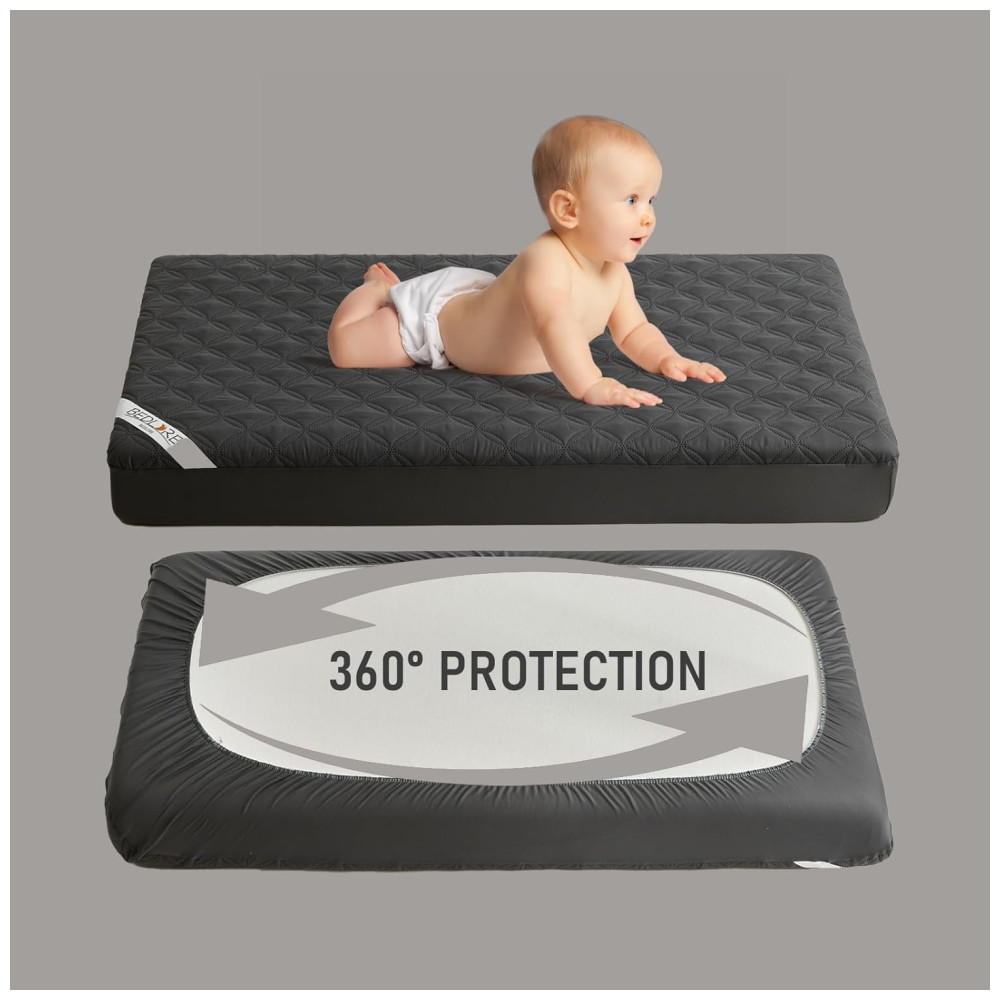Mantenha o colchão do seu bebê limpo e protegido com o nosso Protetor de Colchão de Berço 100% Impermeável, projetado para oferecer conforto e segurança.
