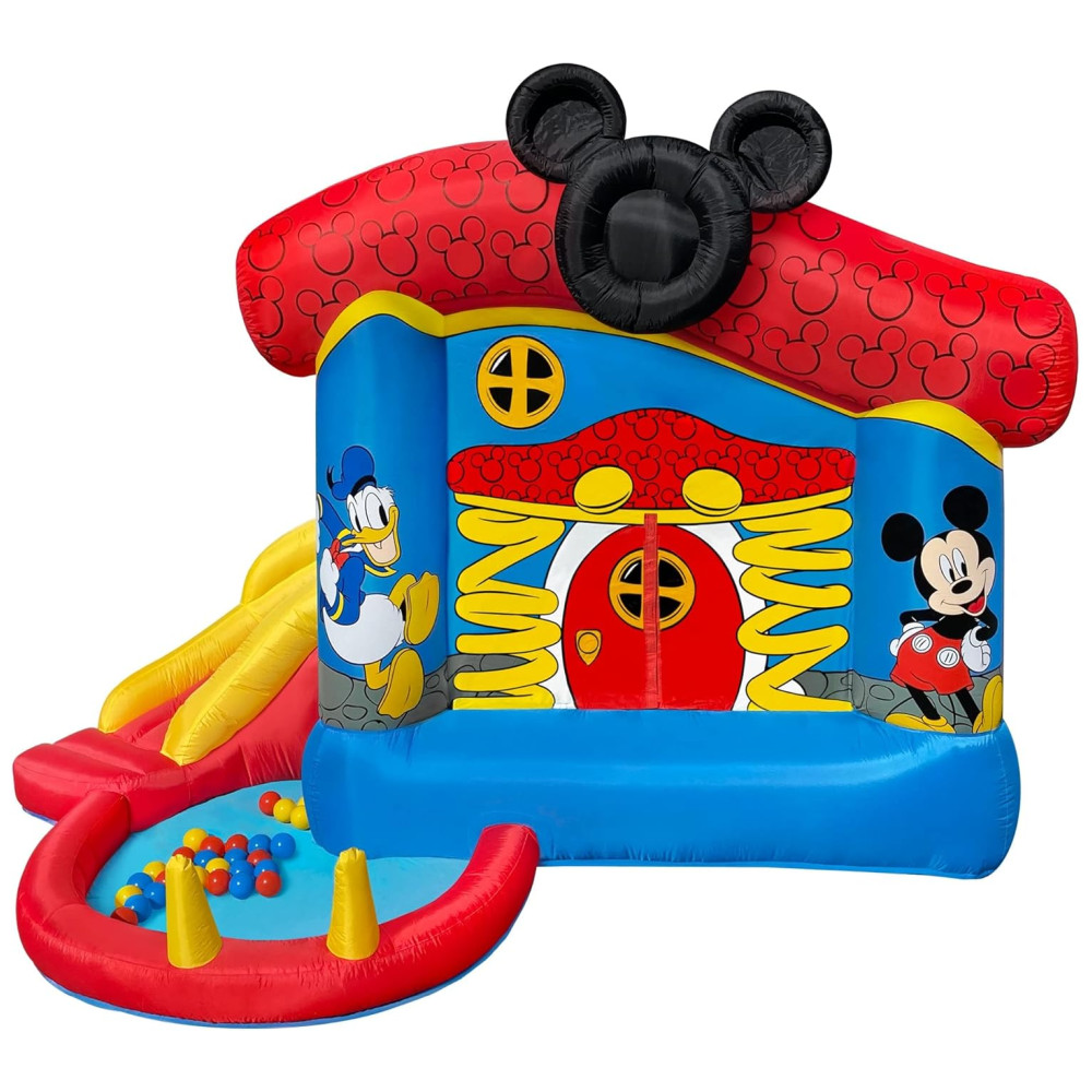 Pula Pula Inflável com Escorregador e Piscina de Bolinhas para Crianças Funormous Disney Mickey Mouse Colorido