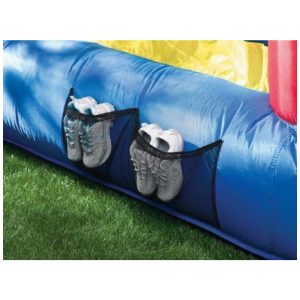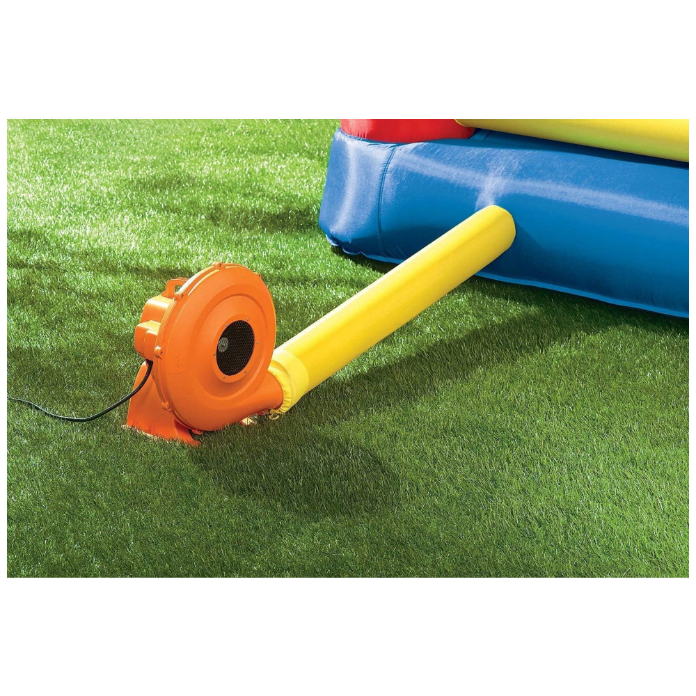 VIAGEM NO LUGAR Estacas incluídas antes do segurança para um local, enquanto o ventilador para serviços pesados fornece fluxo de ar contínuo para manter as crianças pulando