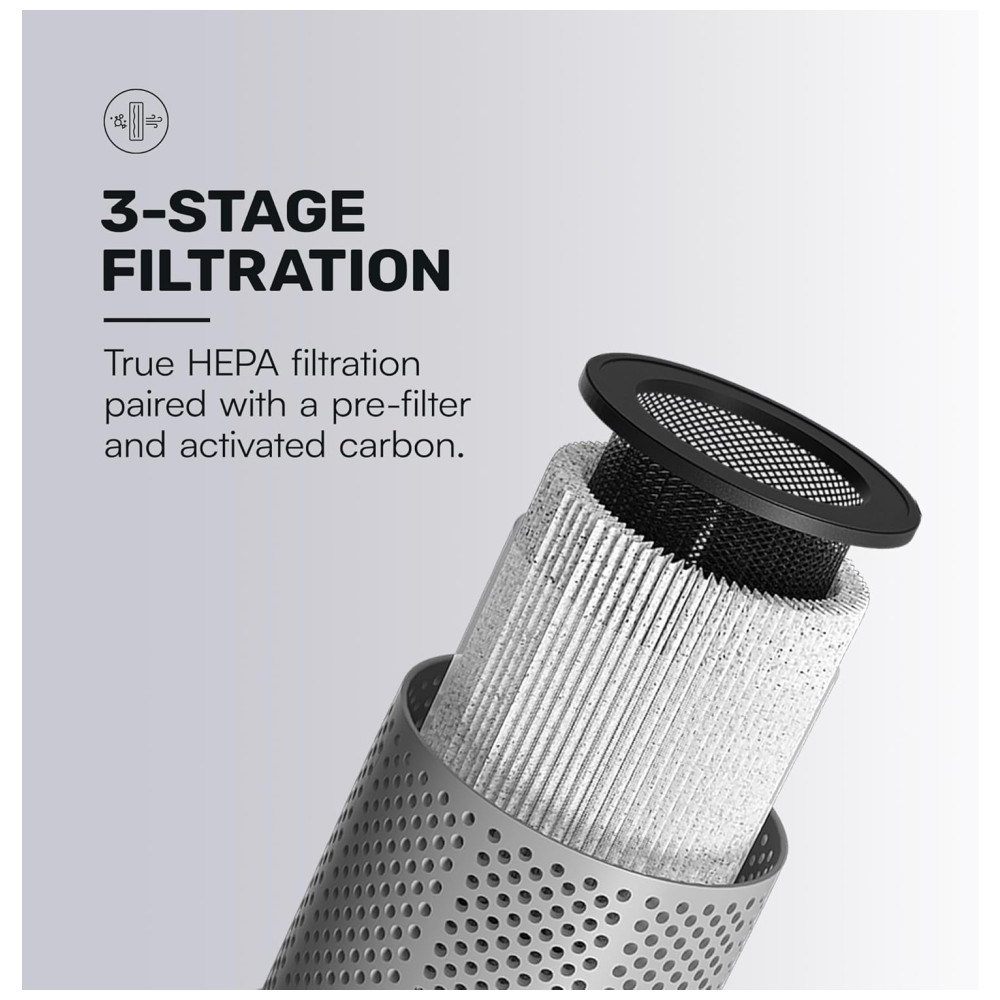 FILTRO DE AR PORTÁVEL l Traga seu filtro de ar portátil com você em qualquer lugar que você vá Pequeno e compacto, o filtro de ar pode caber no suporte do copo do seu carro, na sua mesa, na sua bolsa, em qualquer lugar. Agora, você pode desfrutar de ar limpo sem se preocupar com as partículas de ar não filtradas ao seu redor
