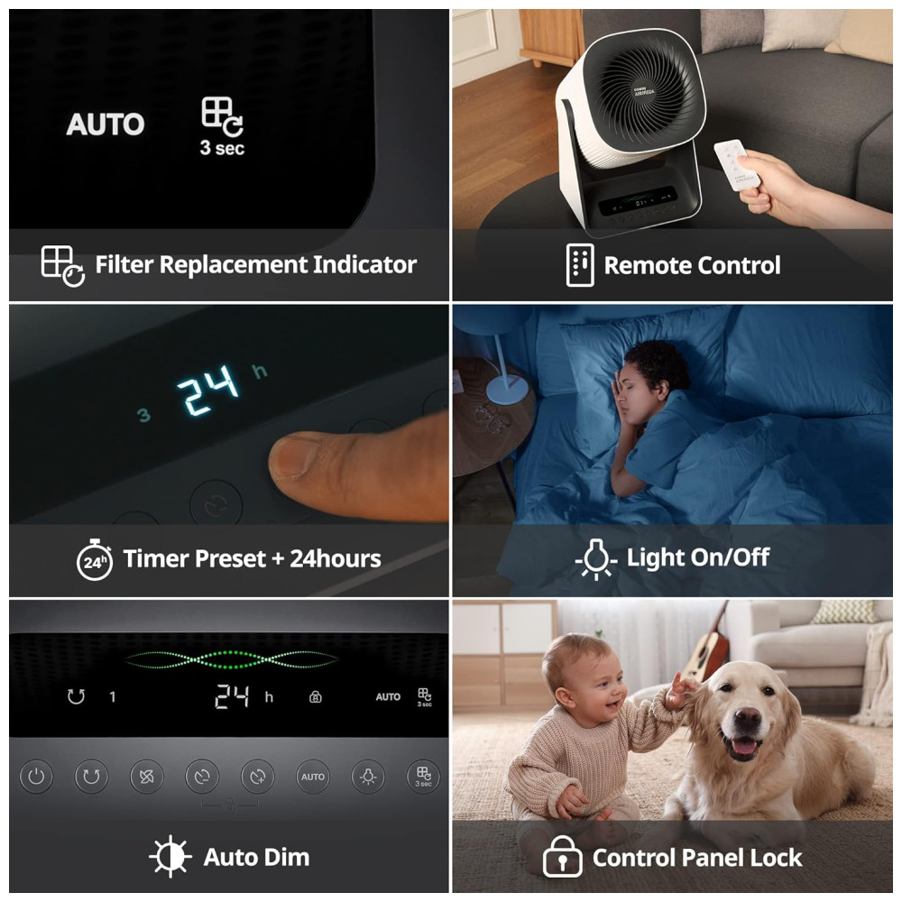 Com um controle remoto, você pode operar a unidade a uma distância de até 3,34 metros. O recurso Modo Automático ajusta automaticamente as velocidades do ventilador com base na qualidade do ar, garantindo um ambiente sempre saudável. O indicador do filtro informa quando é necessário substituir os filtros e limpar o pré-filtro, baseado na quantidade de ar processado, garantindo máxima eficiência.
