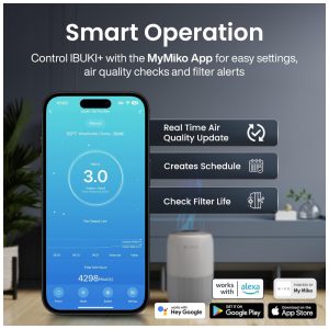 Com o aplicativo MIKO, você pode monitorar, programar e controlar seu purificador diretamente da palma da sua mão, recebendo atualizações e alertas em tempo real. É o seu ar, do seu jeito – assuma o controle e eleve a qualidade do seu ambiente.