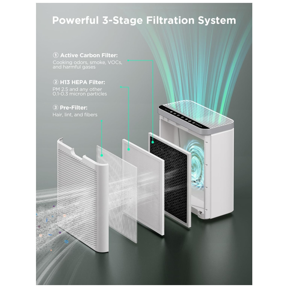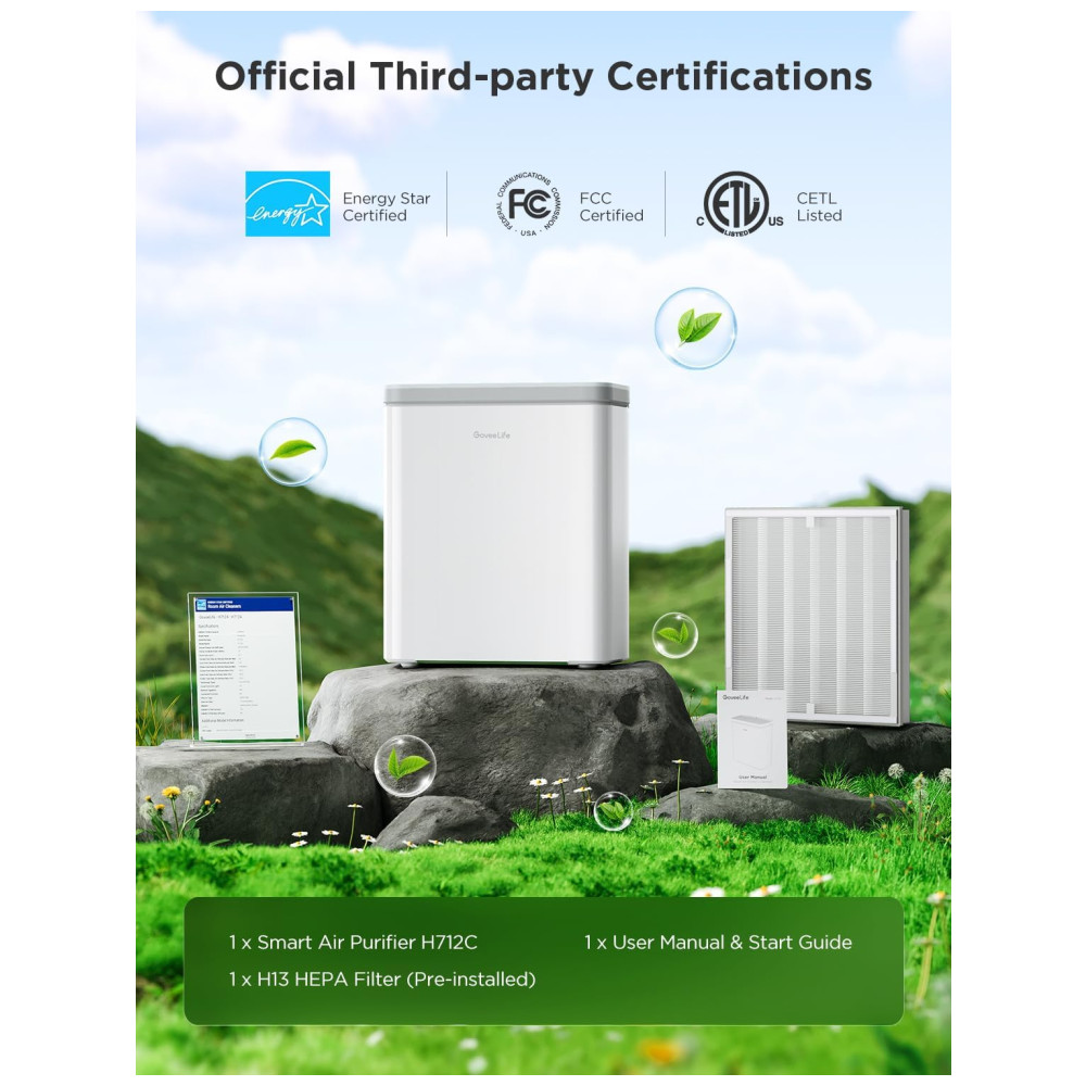 Purificador de Ar 3 em 1 para Ambientes até 97m² com Modo de Suspensão Hepa Controle por APP e Alexa 110V GoveeLife H712C Branco