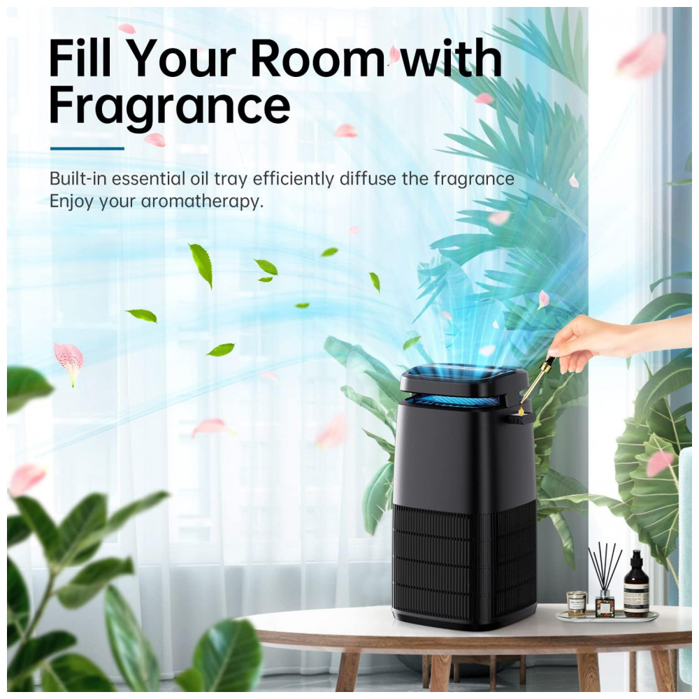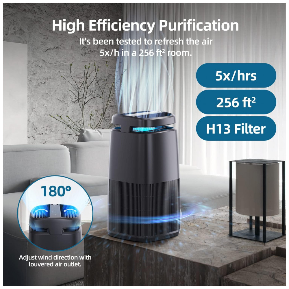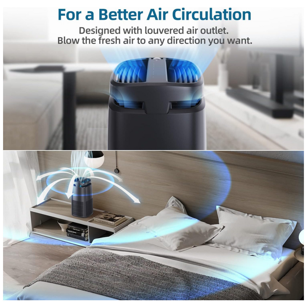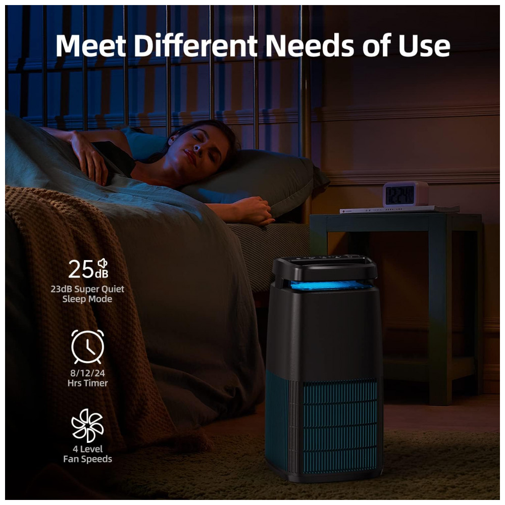 Temporizador de 8, 12, 24 horas e 4 velocidades do ventilador: O purificador de ar possui configurações diferentes, incluindo o modo de suspensão ultra silencioso de 25dB, configuração do temporizador de 8, 12, 24 horas, velocidades de 4 níveis, etc. Essas configurações atenciosas podem cuidar bem de suas necessidades.