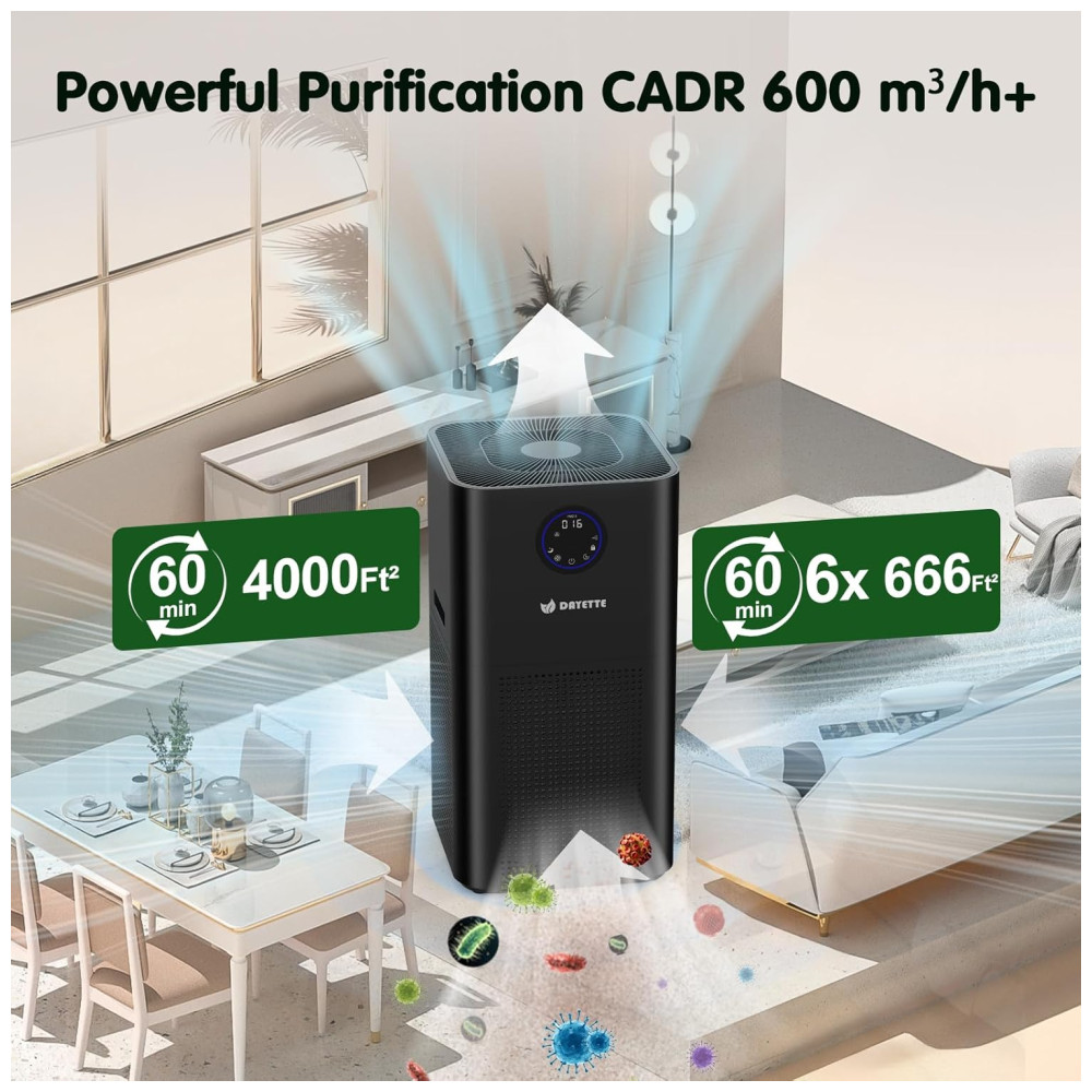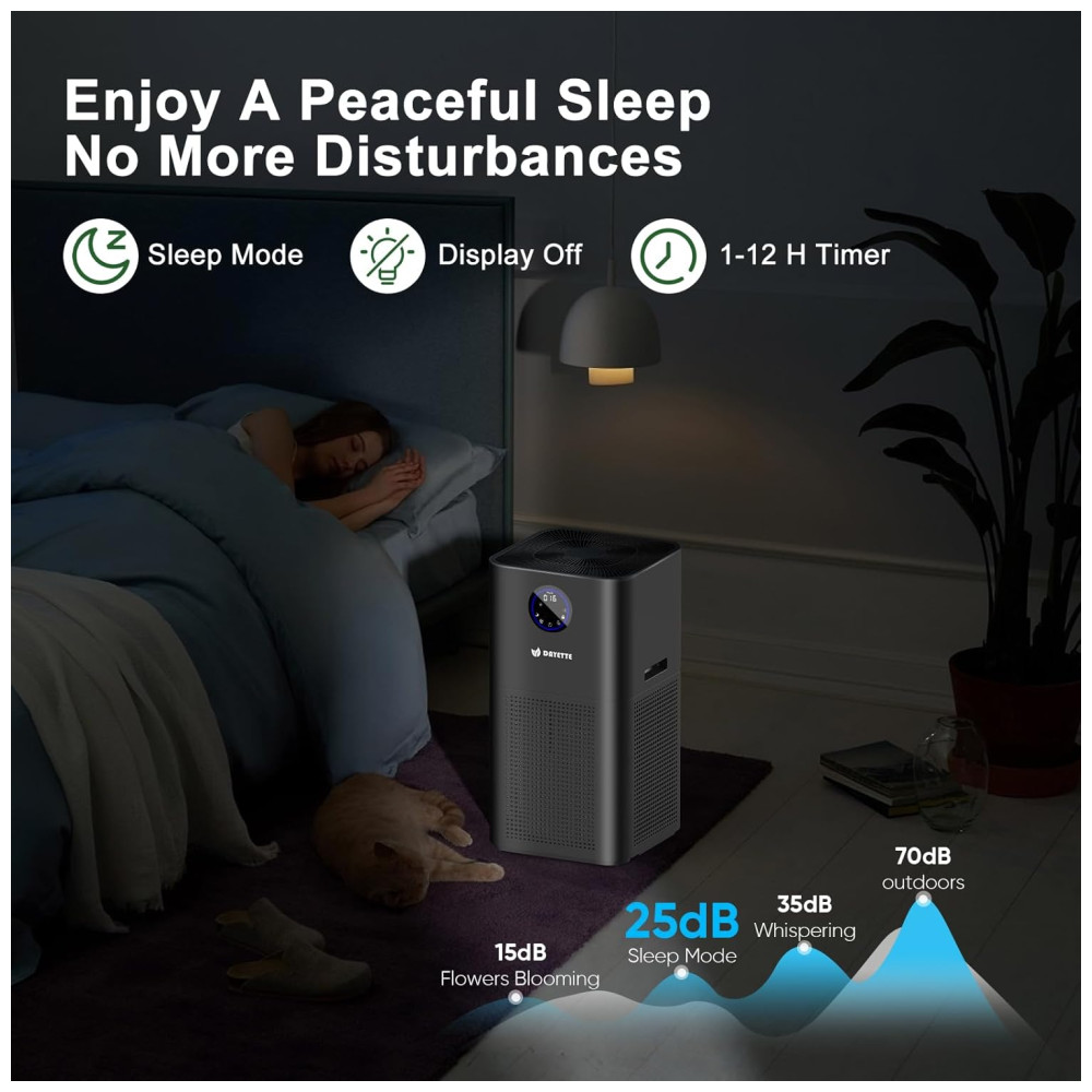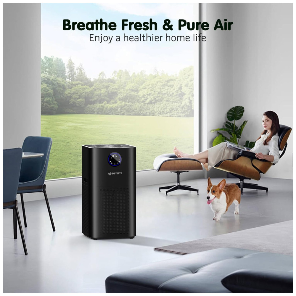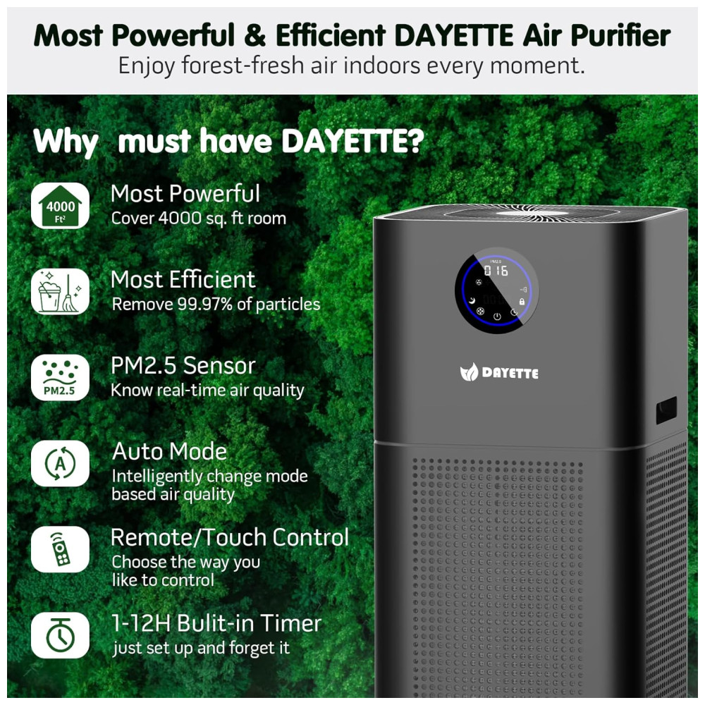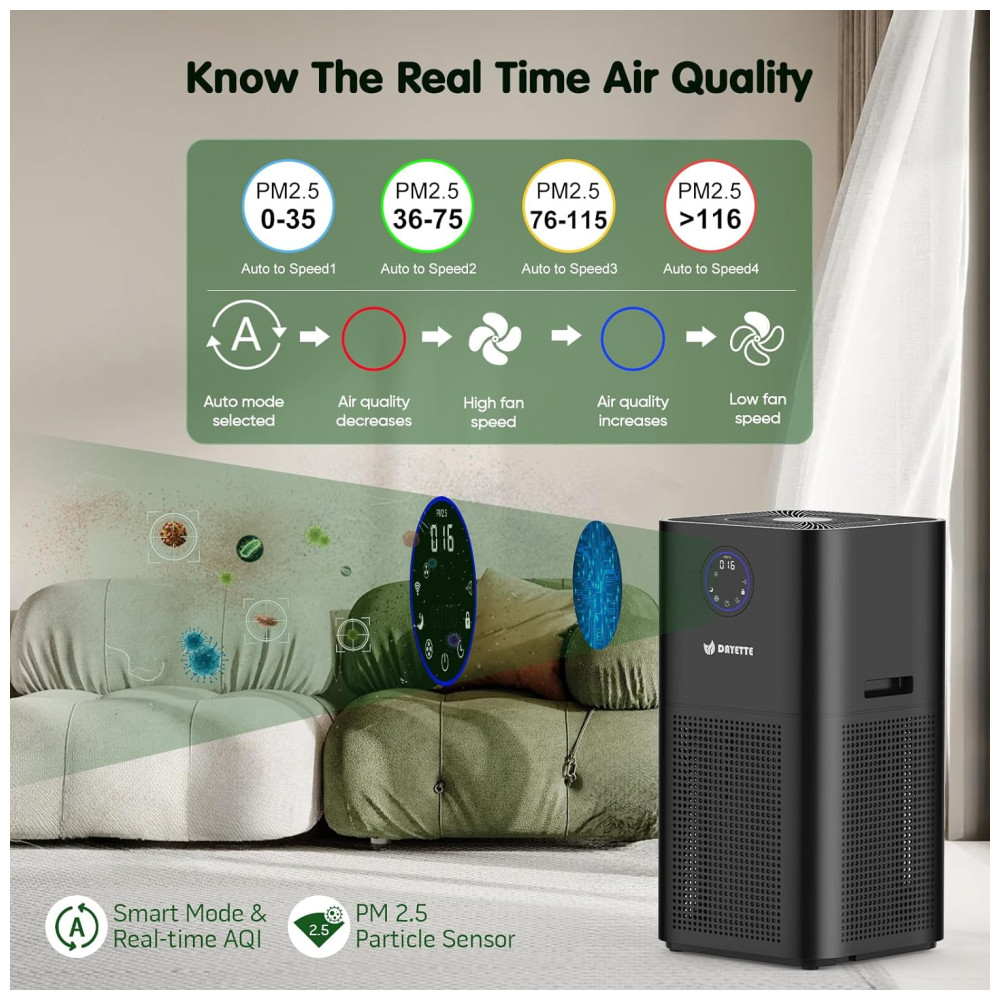 Purificador de Ar 4 em 1 para Ambientes até 371m² com Controle Remoto Modo de Espera Sensor de Qualidade e Entrada de Ar de 360° 110V DAYETTE AP404 Preto