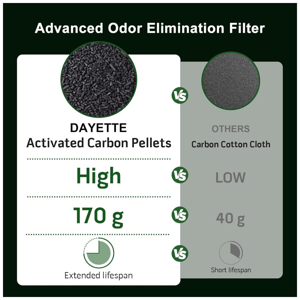 Para obter o melhor desempenho do produto, é recomendável substituir o filtro regularmente a cada 4-6 meses, utilizando apenas filtros de reposição Dayette. Este purificador de ar AP404 é certificado pela FCC, listado ETL, aprovado pela CARB e é 100% livre de ozônio.