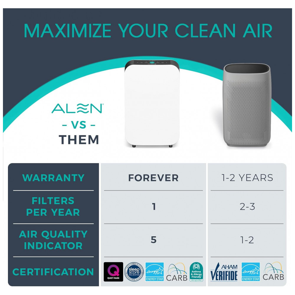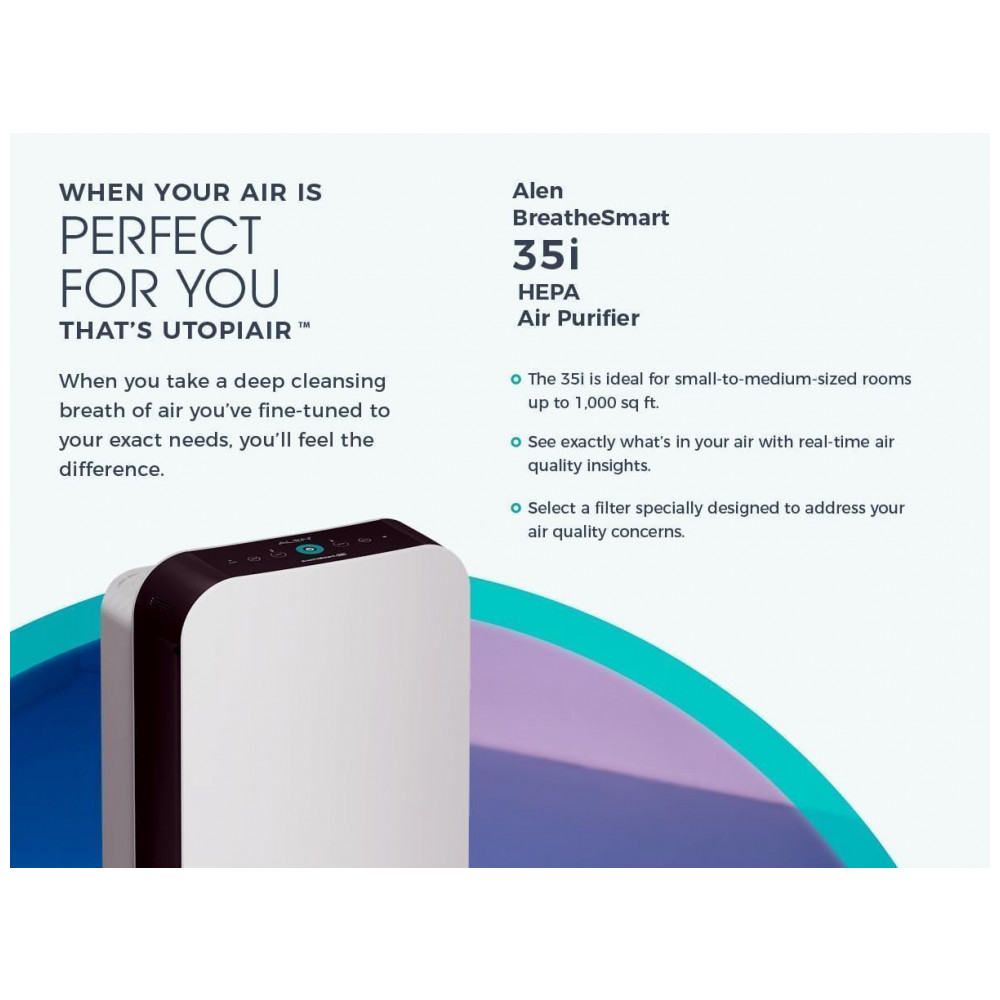 Purificador de Ar Alen BreatheSmart 35i com Filtro HEPA Puro – Ideal para Combater Poeira e Alergenos em 465 a 93 Metros Quadrados