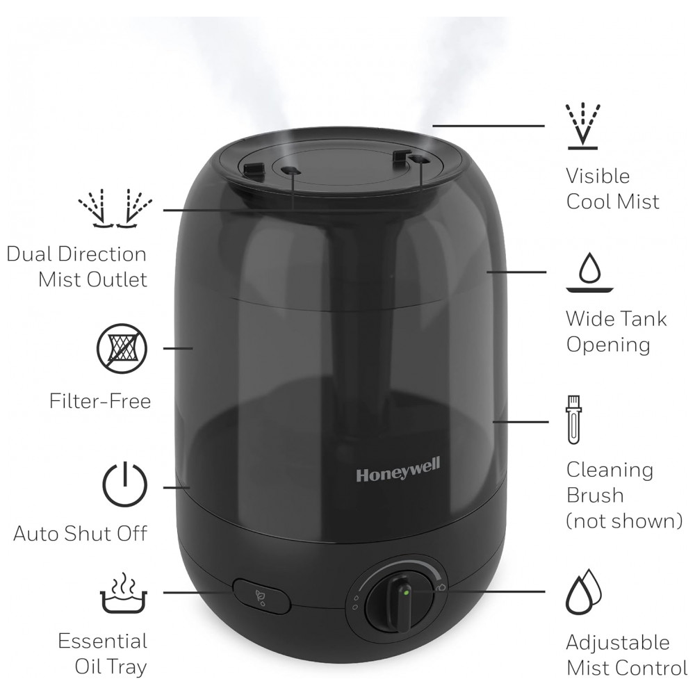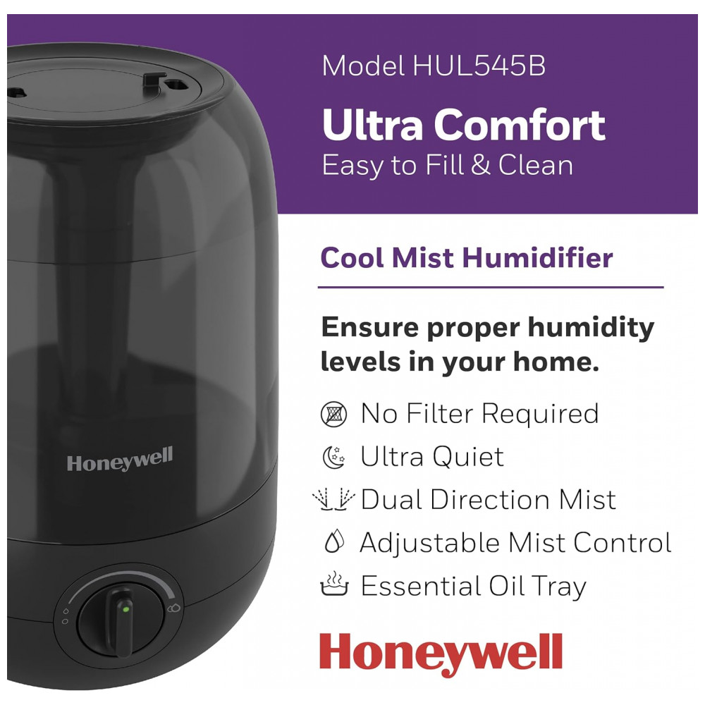 HUMIDIFICADOR COOL MIST O umidificador Honeywell Ultra Comfort Cool Mist HUL545 ajuda a garantir níveis adequados de umidade em salas pequenas. Os níveis de umidade interna entre 40 60 podem ajudar a aliviar a tosse, congestão, manter a garganta, passagens nasais hidratadas e muito mais.