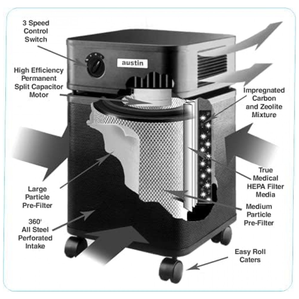 Purificador de Ar Austin Air HealthMate Plus Midnight Blue – Filtração Avançada em 4 Estágios para Casa com Carvão Ativado e Zeólita