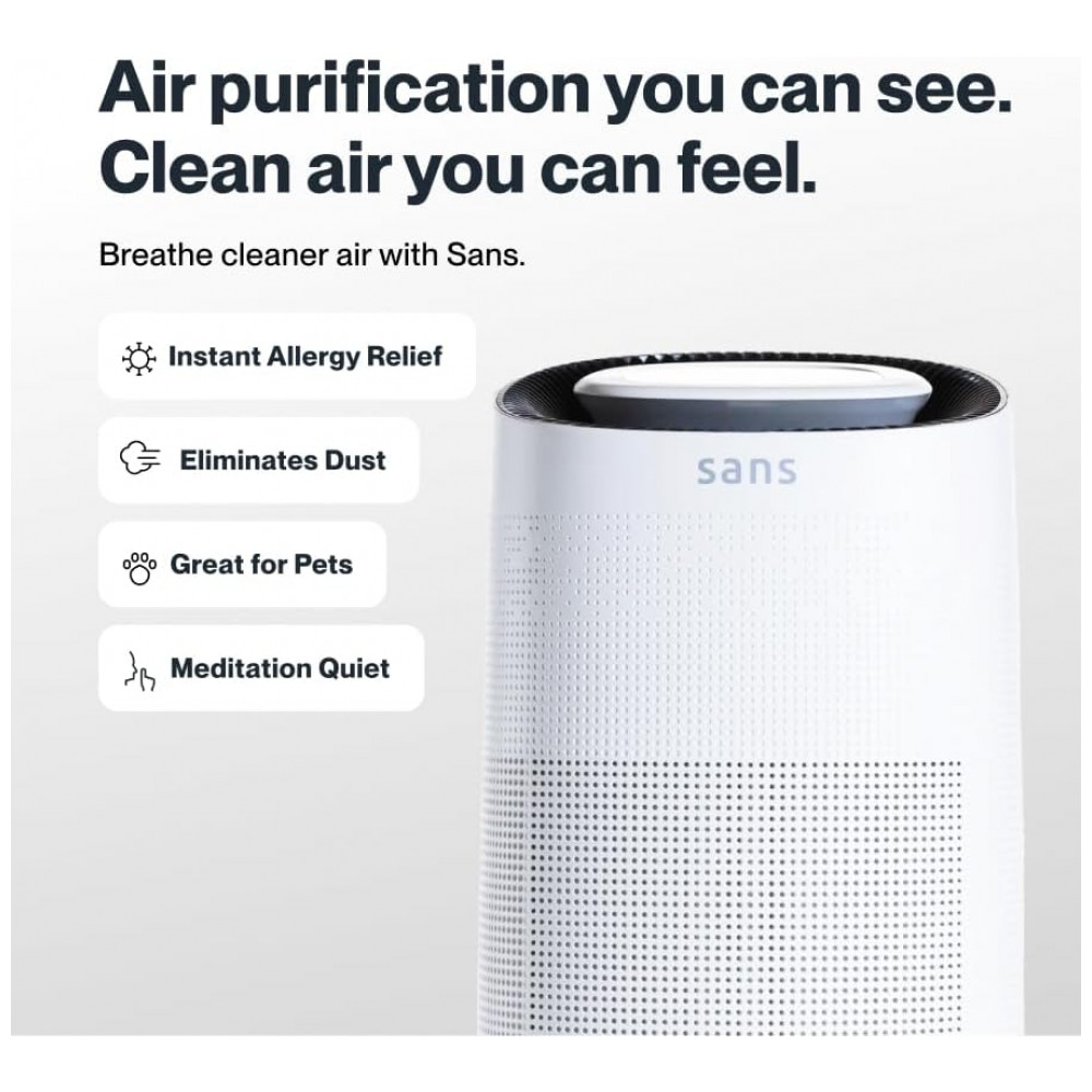 MODO AUTOMÁTICO DE QUALIDADE DO AR O modo automático monitora constantemente a qualidade do ar e ajusta a purificação de acordo. O sensor preciso de poluentes a bordo significa que o seu Sans está sempre trabalhando para você, sem a necessidade de qualquer intervenção. Verdadeiramente livre de problemas.