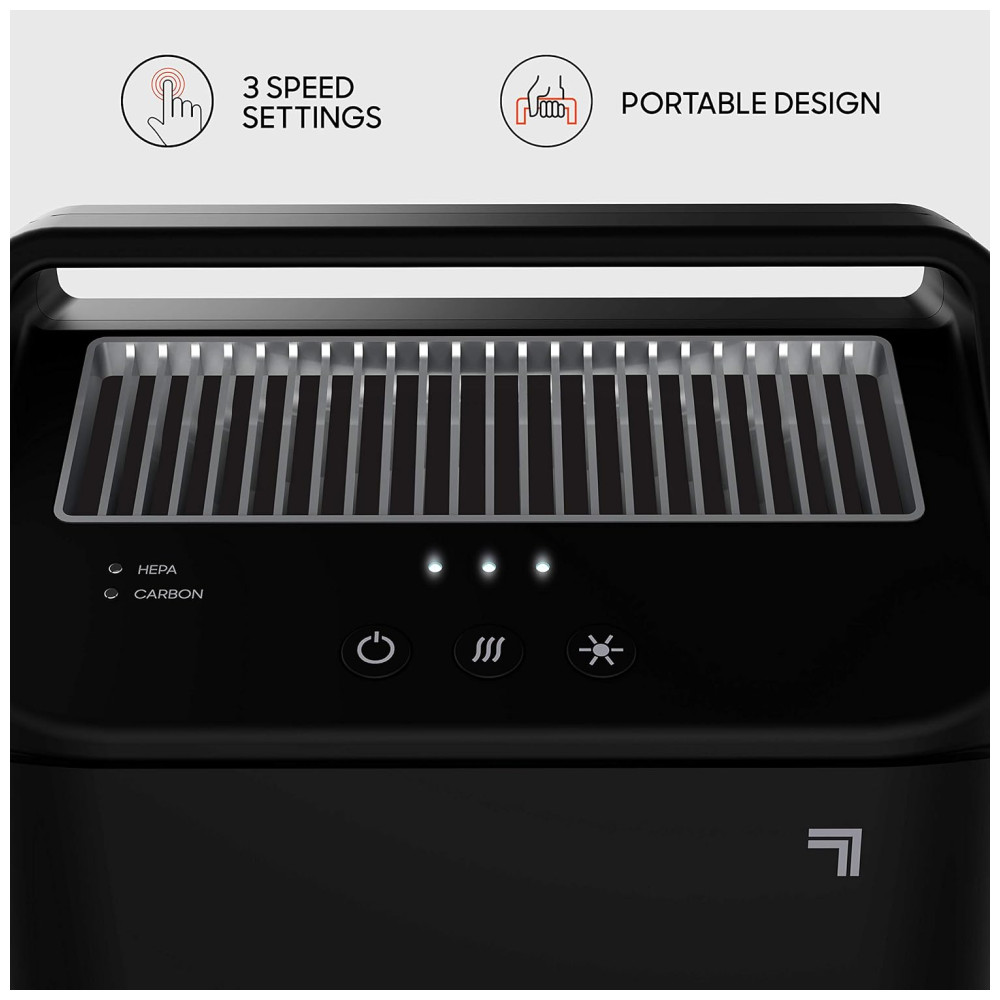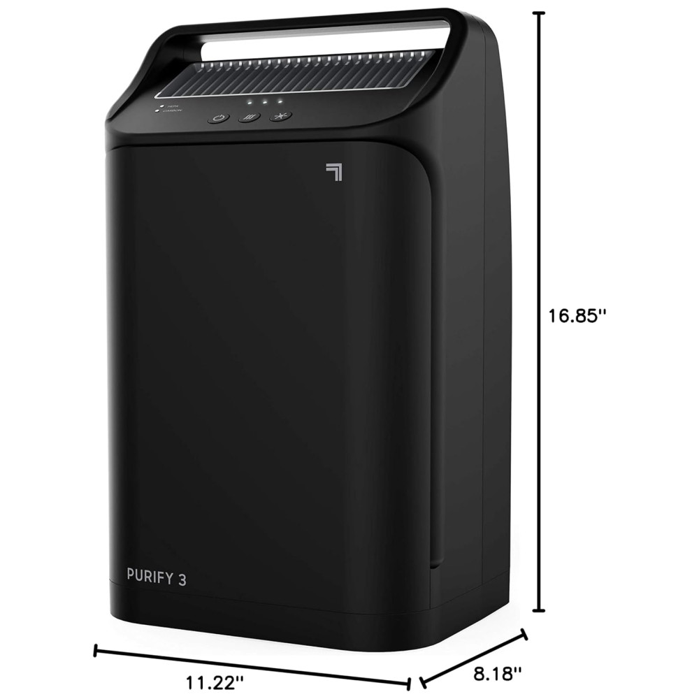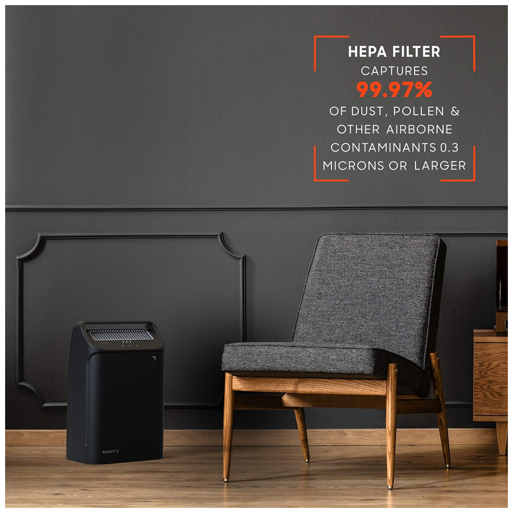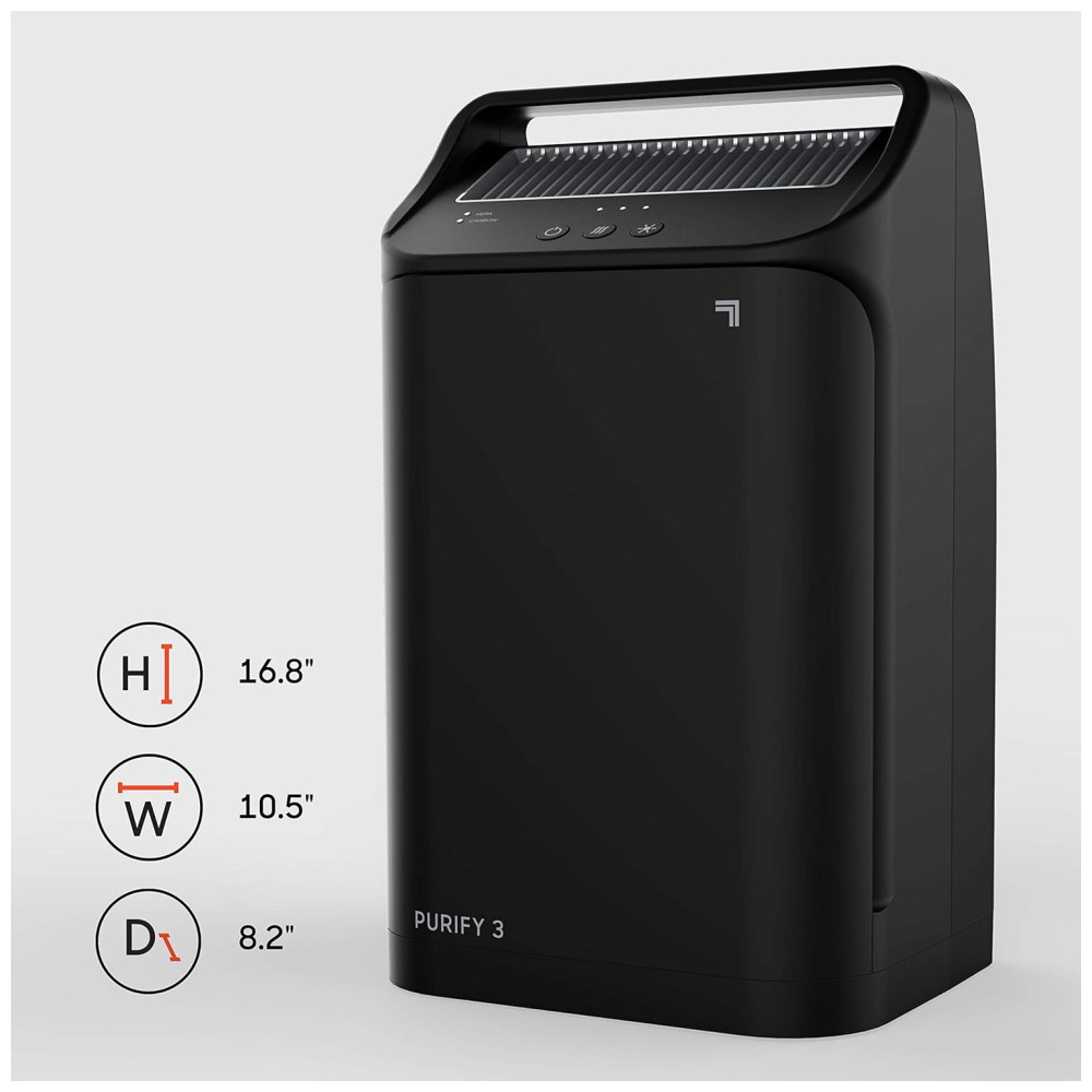 PORTABILIDADE E ESTILO Purify 3 cobre salas pequenas até 9 metros quadrados. A alça de design portátil facilita a movimentação em toda a casa e se adapta perfeitamente a todos os estilos de vida