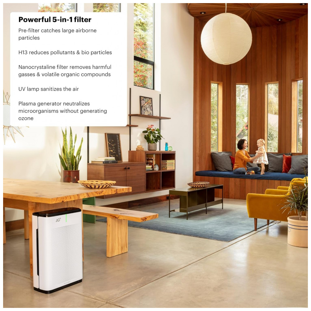 O Purificador de Ar Brondell P700BBW Pro oferece um Sistema de Filtragem Completo de 5 etapas, incluindo pré-filtro, filtro HEPA H13, filtro de carvão ativado, tecnologia UV e purificação por plasma. Captura eficazmente partículas do ar tão pequenas quanto 0,3 mícrons, como poeira, pólen, fumaça e pelos de animais, garantindo ar mais limpo em sua casa de até 160 metros quadrados. Com remoção rápida de contaminantes aéreos, tecnologia de circulação de ar de alta eficiência, filtro HEPA H13 com revestimento AG, monitoramento inteligente da qualidade do ar PM2.5 com modo automático, este purificador é ideal para purificar grandes ambientes.