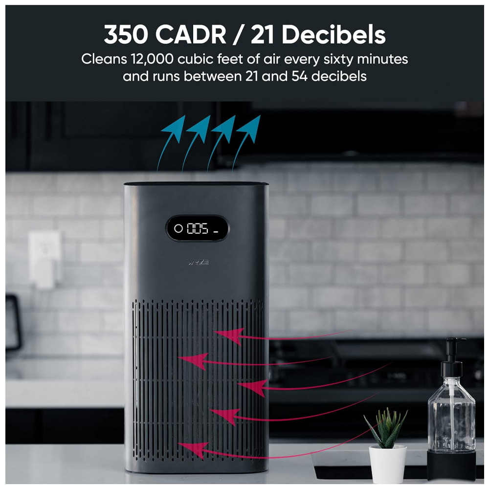 GRANDE COBERTURA: Purificação poderosa Capaz de limpar uma sala de 46,45 metros quadrados mais de três vezes em uma hora 350 m, h CADR. Os purificadores Smart Air de alto desempenho podem purificar grandes espaços, como quartos, salas de estar, cozinhas e porões.