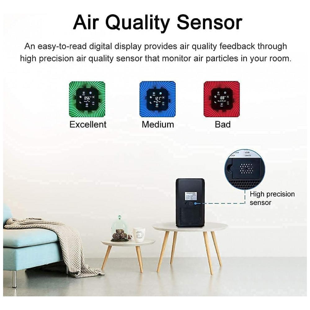 Sensor de qualidade do ar O LED de cores vivas fornece feedback da qualidade do ar por meio de um sensor de qualidade do ar de alta precisão que monitora as partículas de ar em seu quarto e possui um temporizador de 1 a 12 horas. Possui um indicador de tempo de vida útil do filtro para permitir que os usuários saibam quando substituir o filtro